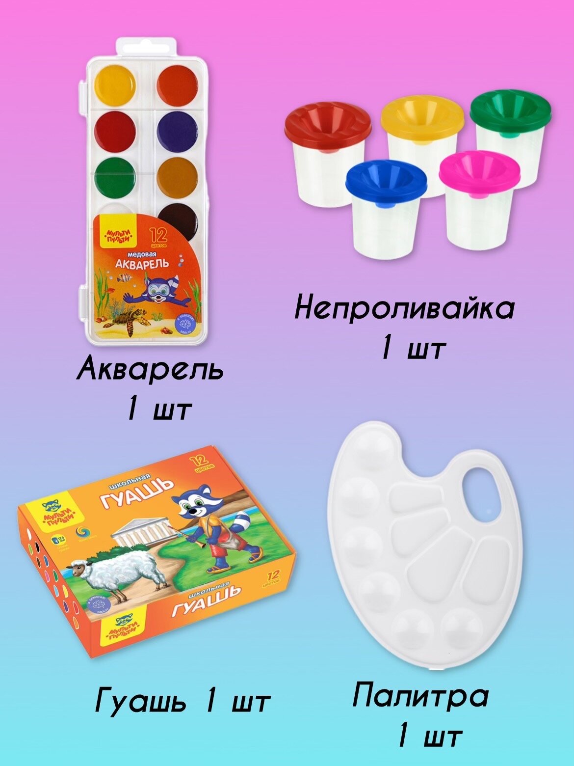 | В комплекте | альбом для рисования, белый картон, доска для лепки, карандаш, кисть, клей-карандаш, краски, ластик, линейка, ножницы, обложка, палитра, пенал, пластилин, подставка, расписание уроков, ручка, тетрадь, точилка, цветная бумага, цветной картон, цветные карандаши |