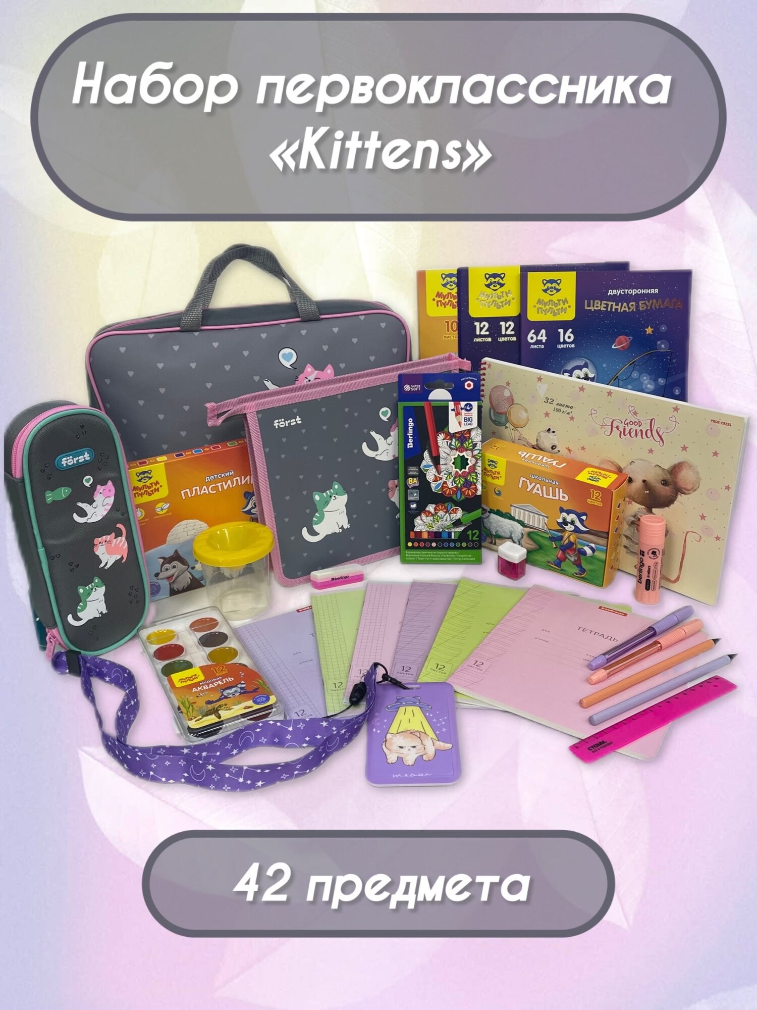 Купить Набор первоклассника премиум качества "Kittens", 42 предмета