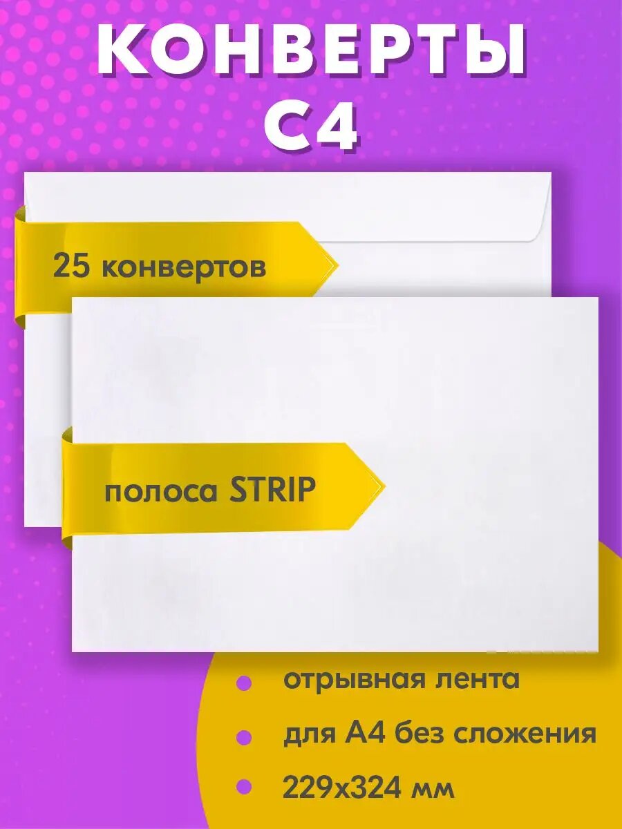 СохранитьКонверты С4 (229х324 мм), отрывная лента, 100 г/м2, комплект 25 шт., BRAUBERG, 121852 интересное: