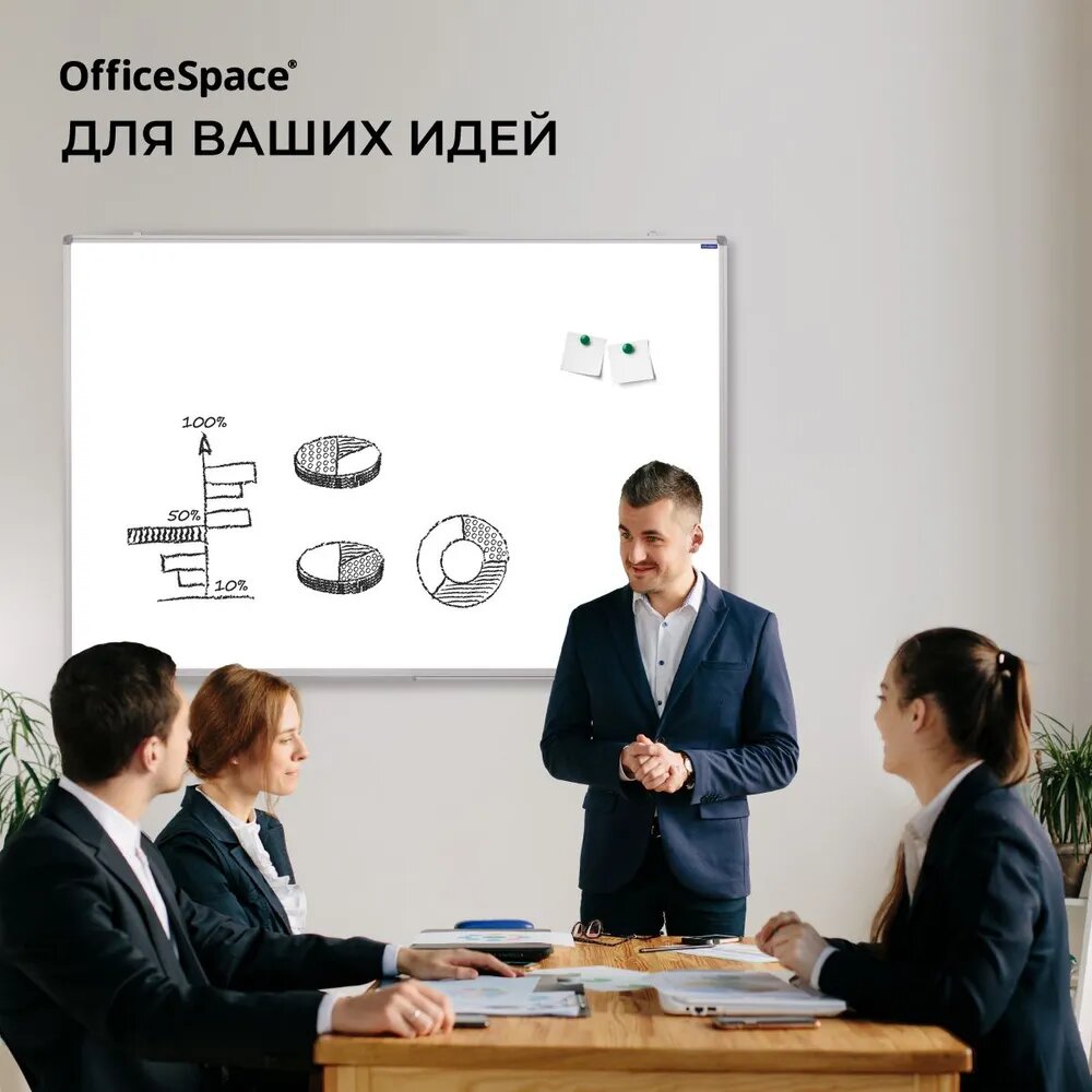 Маркерная доска для рисования магнитная на стену для заметок 100*150 см школьная OfficeSpace / доска магнитно-маркерная в школу и офис интересное:
