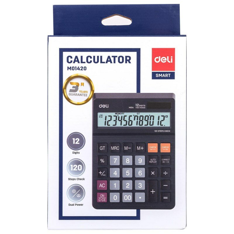 Ниже Вы можете прочитать отзывы на Калькулятор настольный полноразм. Deli EM01420, 12-р,дв.пит, 180х126мм,чер, ознакомится с подробными характеристиками, посмотреть интересные обзоры и фотографии на Калькулятор настольный полноразм. Deli EM01420, 12-р,дв.пит, 180х126мм,чер.