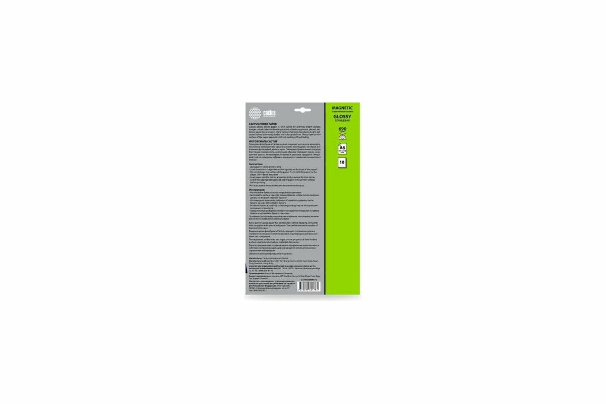 Бумага с магнитным слоем Cactus A6, 690г/м2, 10л., глянцевая, CS-MGA669010