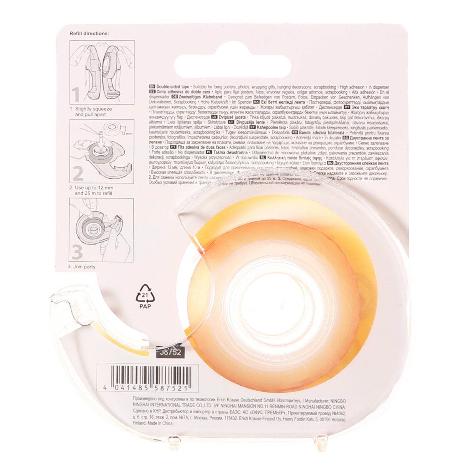 Двусторонняя клейкая лента ErichKrause, прозрачная, 12ммх10м, в диспенсере интересное: