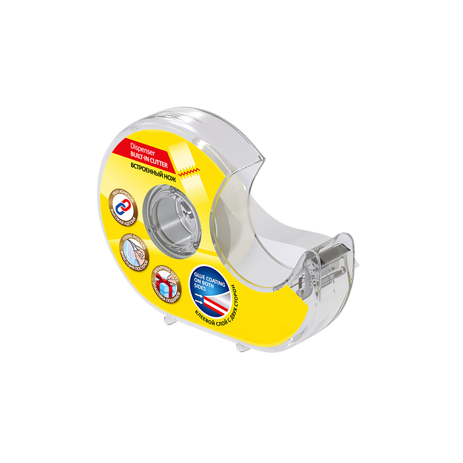Двусторонняя клейкая лента, прозрачная, 12мм х 10м, в диспенсере