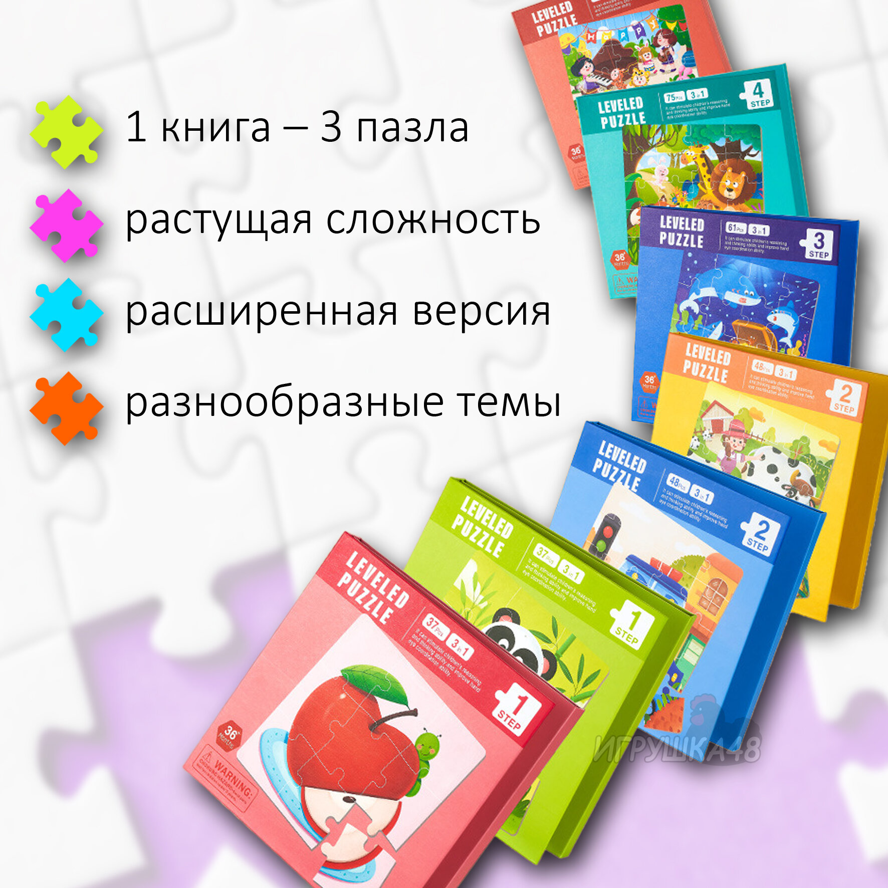 СохранитьМагнитный пазл для малышей 3 в 1 / Пазл на магнитах игра в дорогу / Набор пазлов разного уровня сложности, 61 деталь, Лесные животные, фиолетовый интересное:
