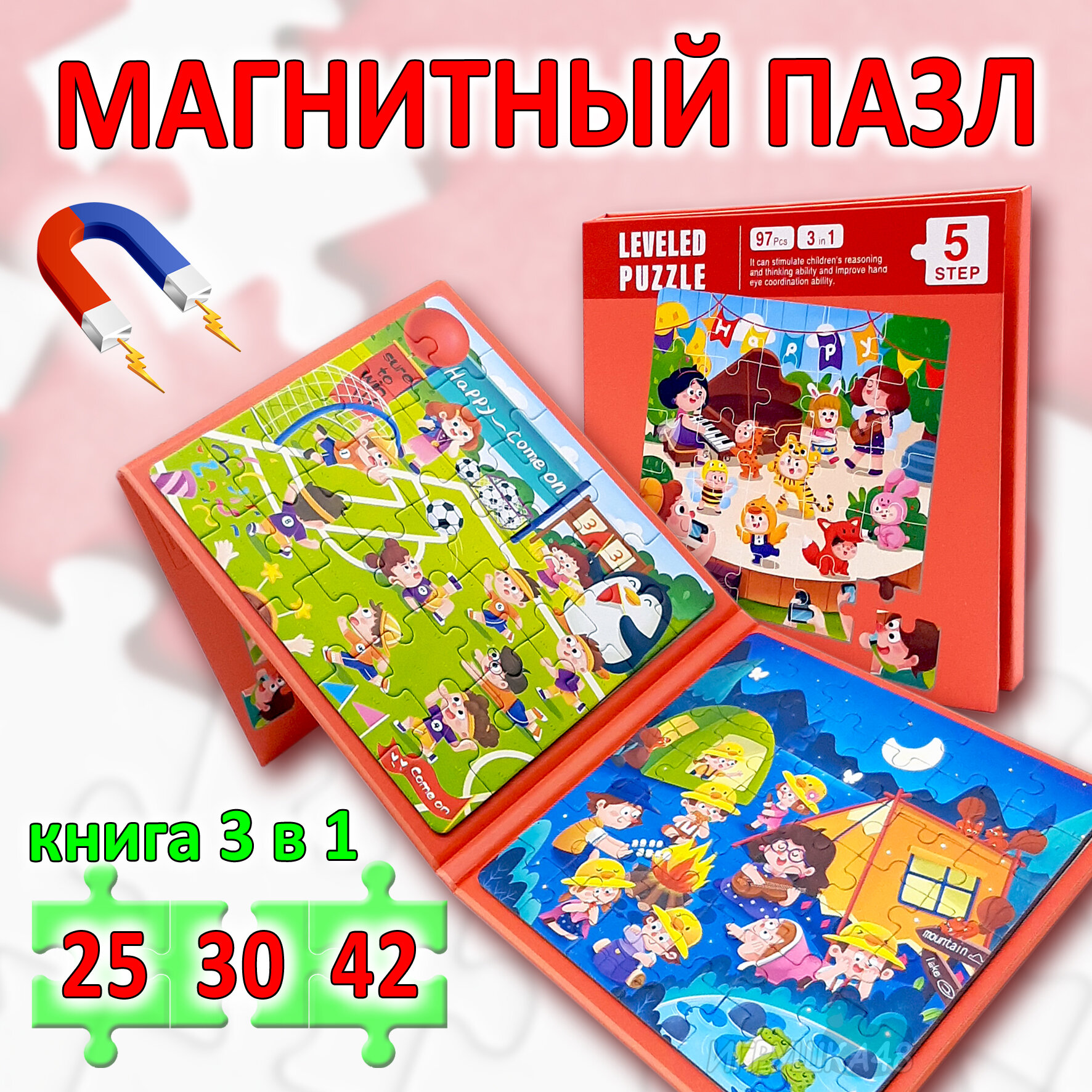 СохранитьМагнитный пазл для малышей 3 в 1 / Пазл на магнитах игра в дорогу / Набор пазлов разного уровня сложности, 97 деталей, Школа, темно-красный интересное: