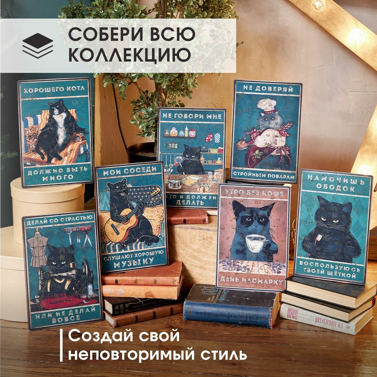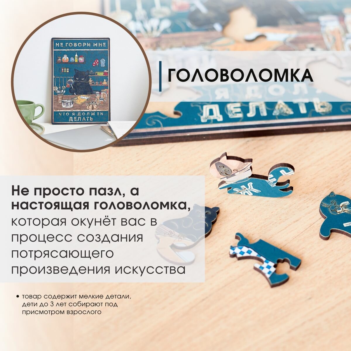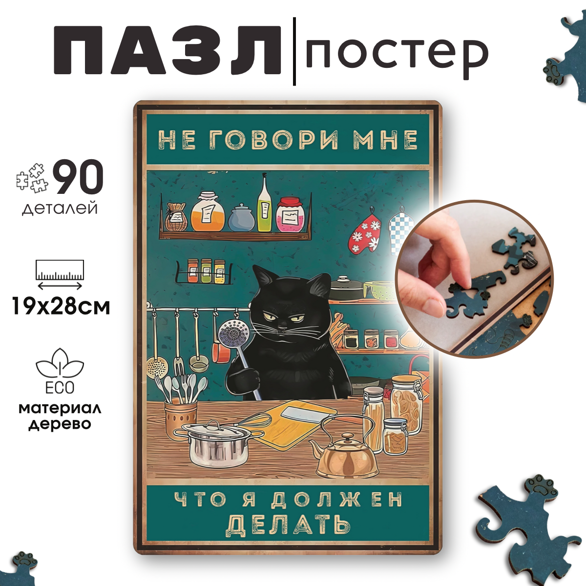 СохранитьДеревянные пазлы для взрослых и детей с рамкой 90 уникальных фигурных деталей кот шумовка Vintage Puzzle Posters интересное: