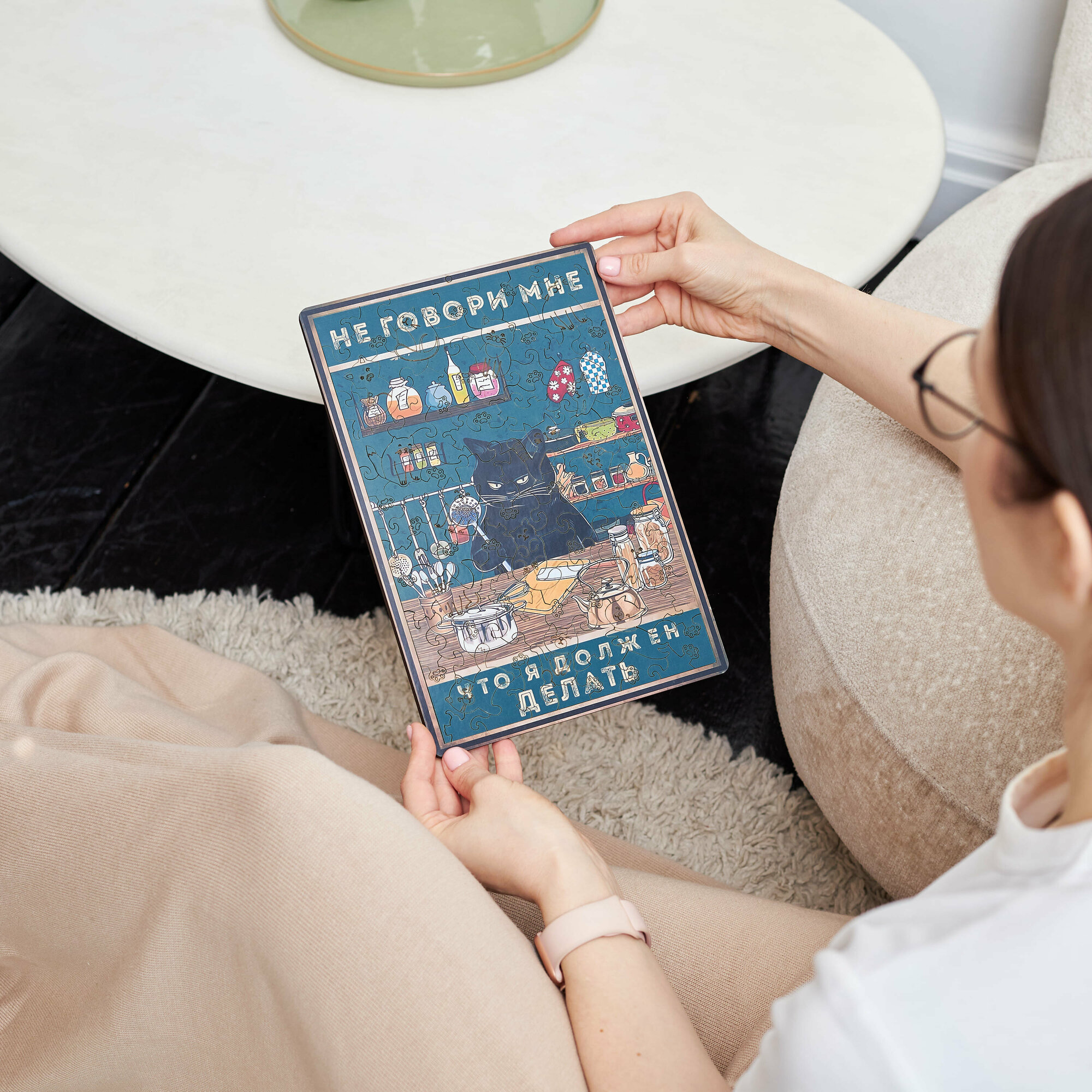 Деревянные пазлы для взрослых и детей с рамкой 90 уникальных фигурных деталей кот диван Vintage Puzzle Posters
