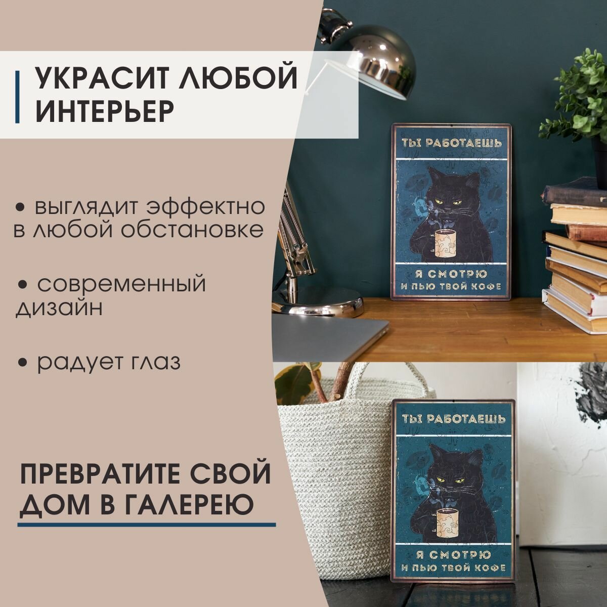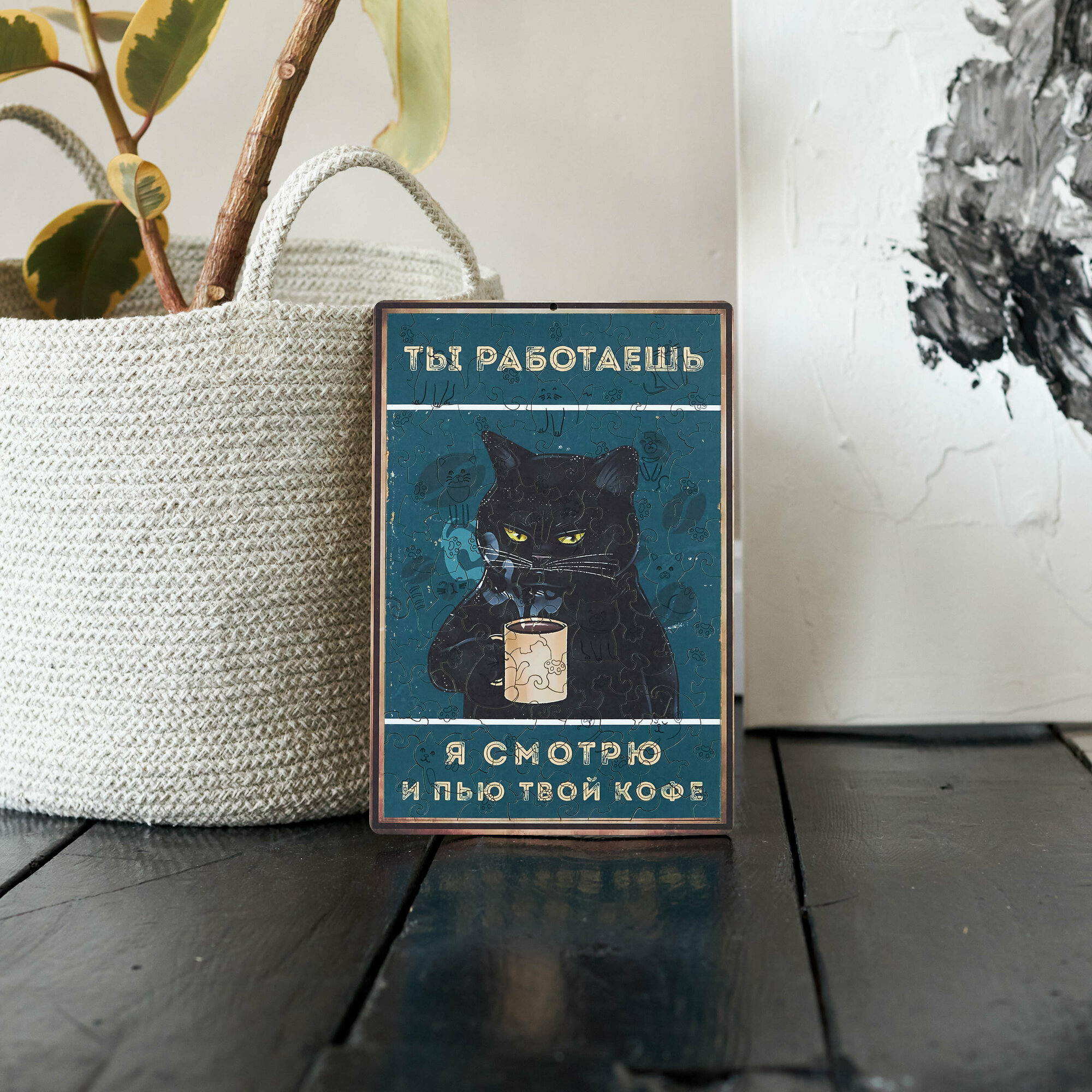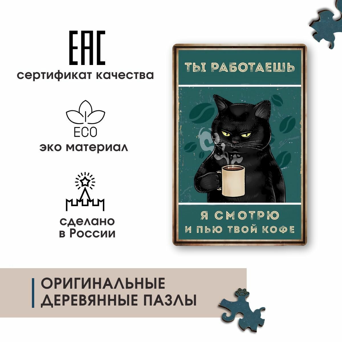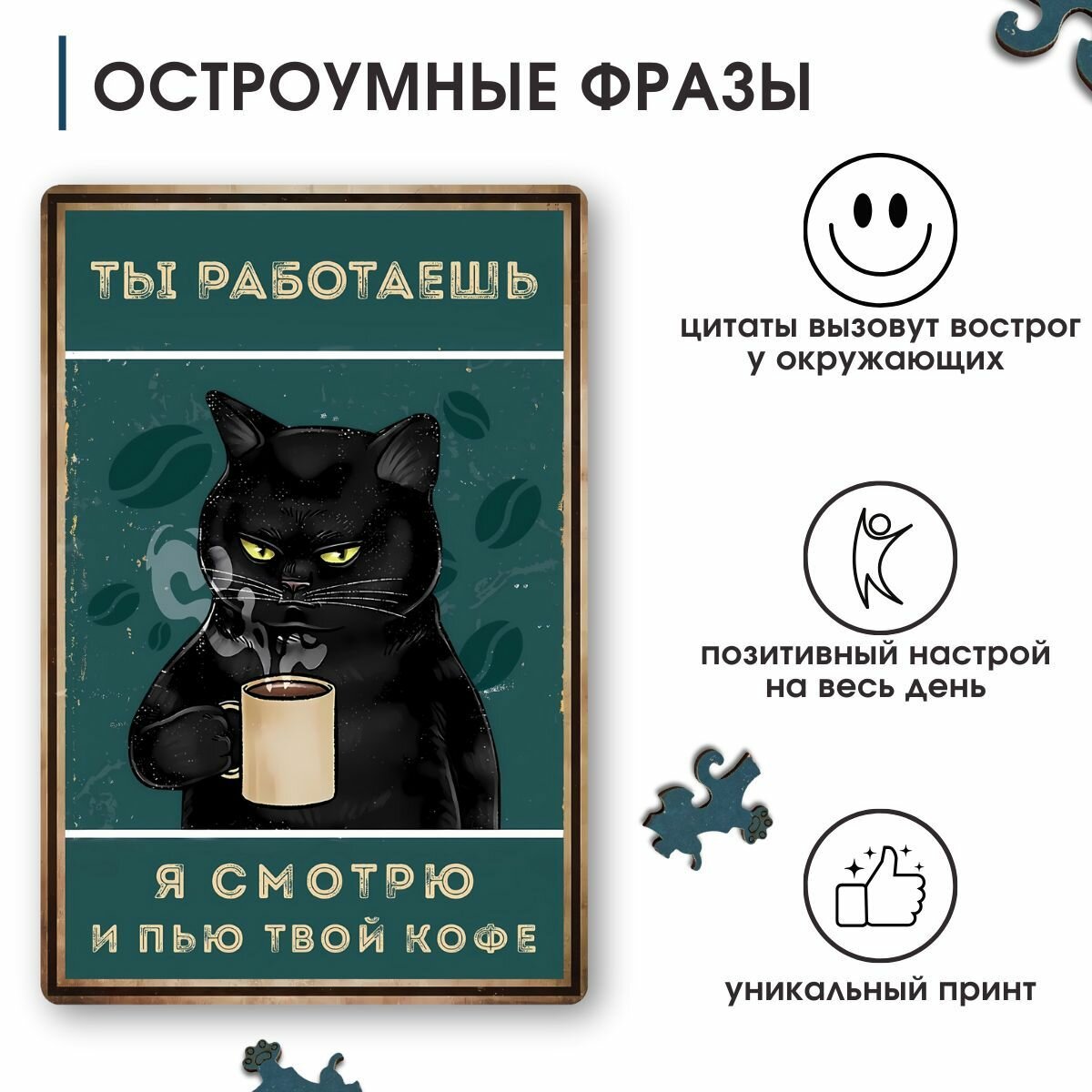 СохранитьДеревянные пазлы для взрослых и детей с рамкой 90 уникальных фигурных деталей кот кружка кофе Vintage Puzzle Posters интересное: