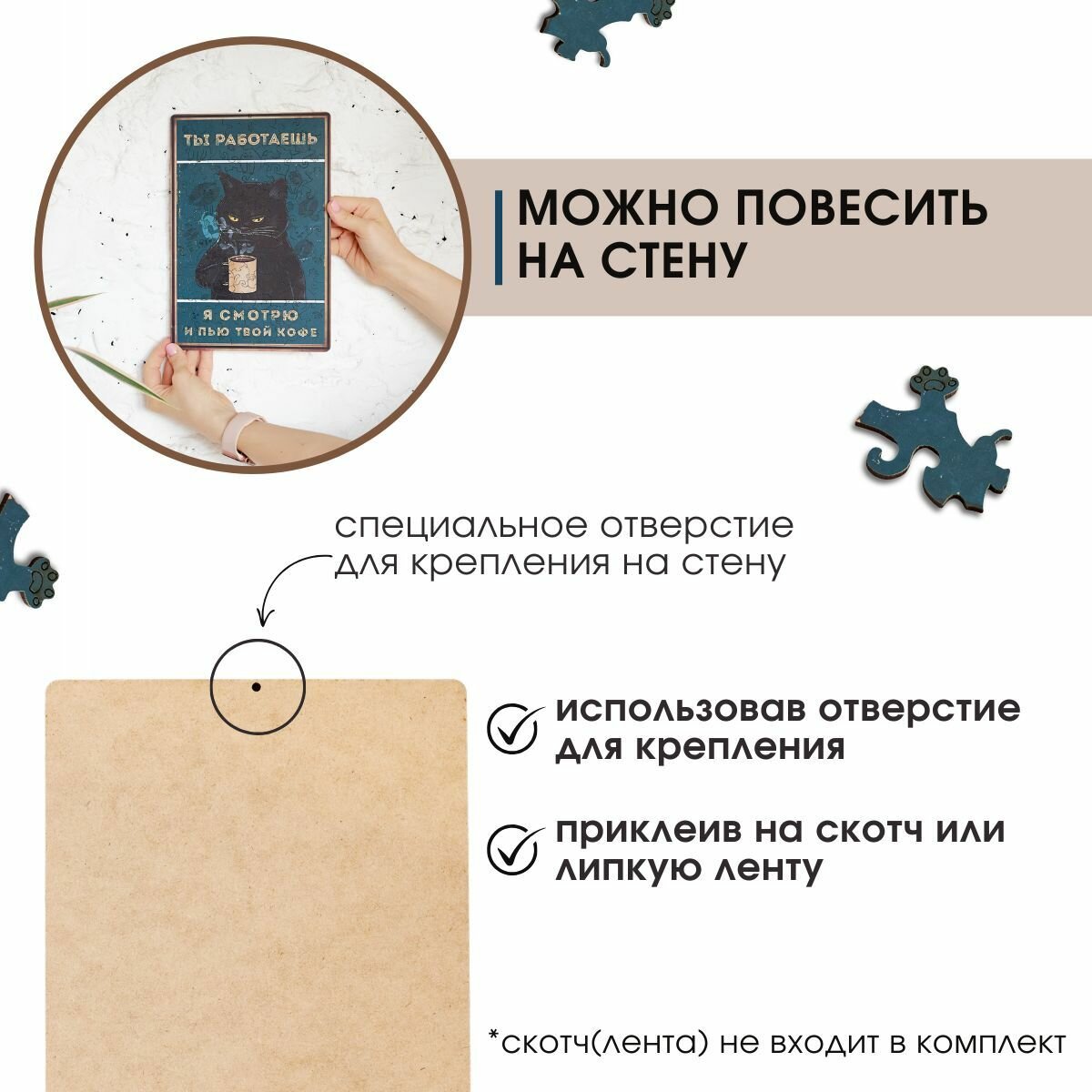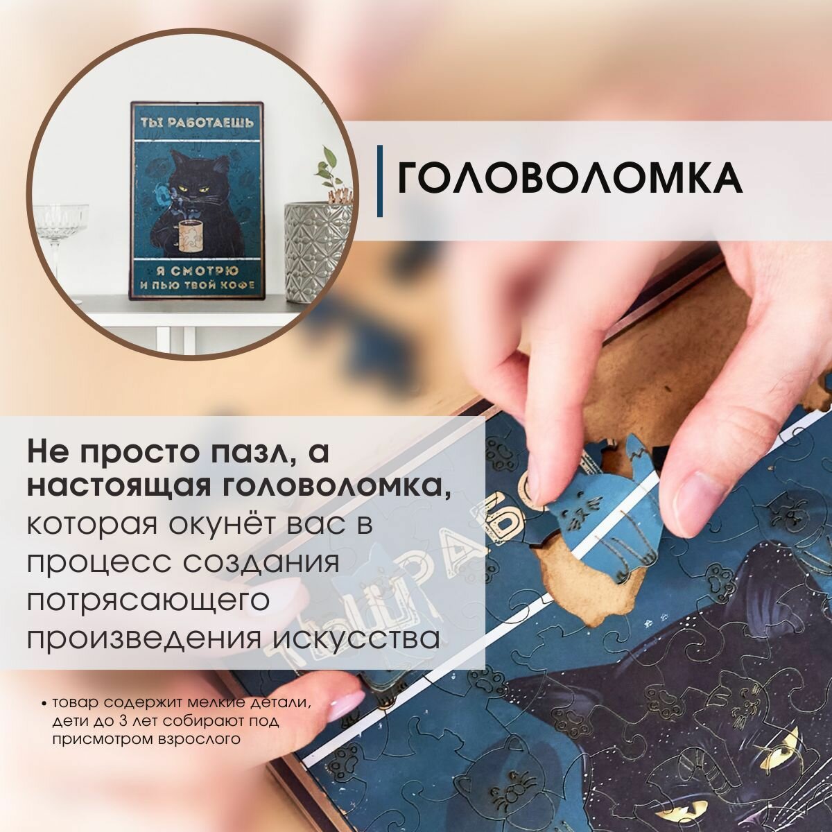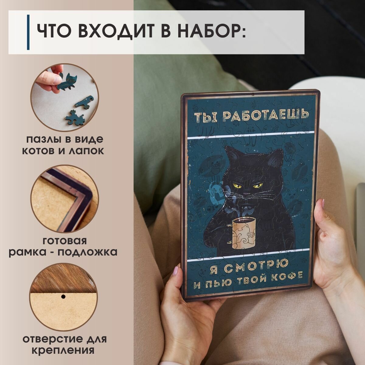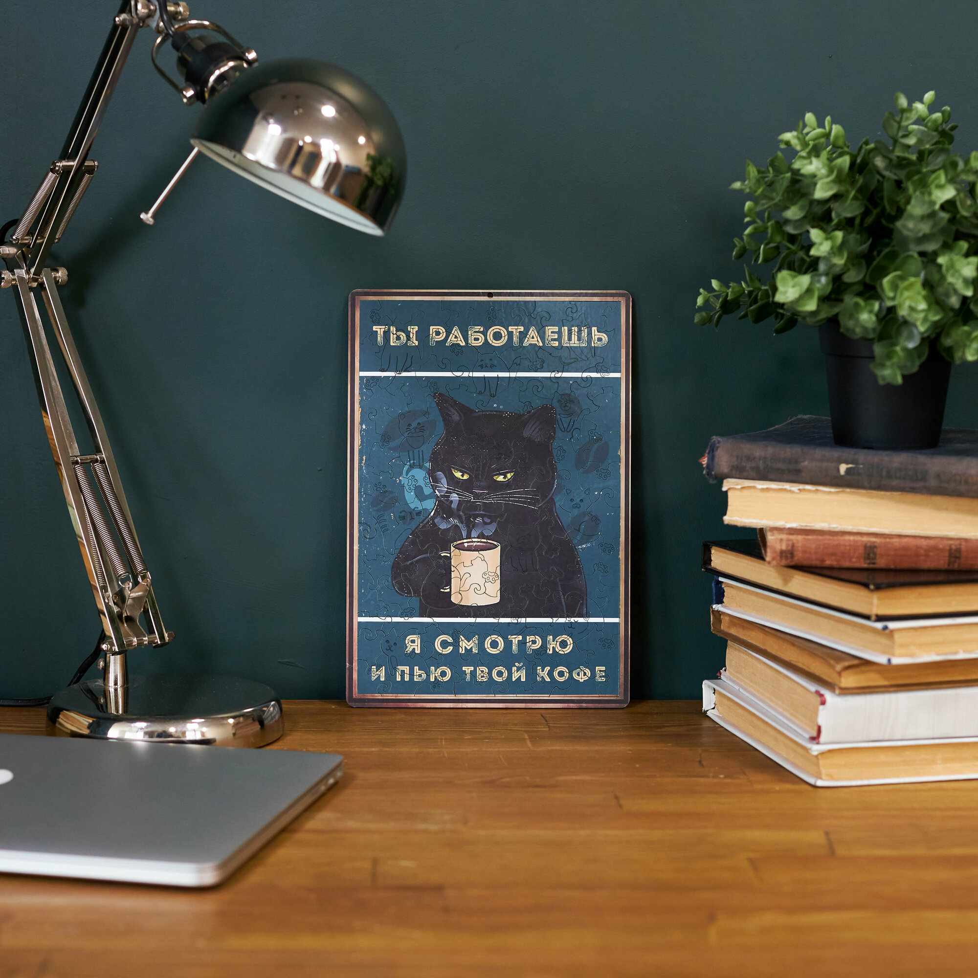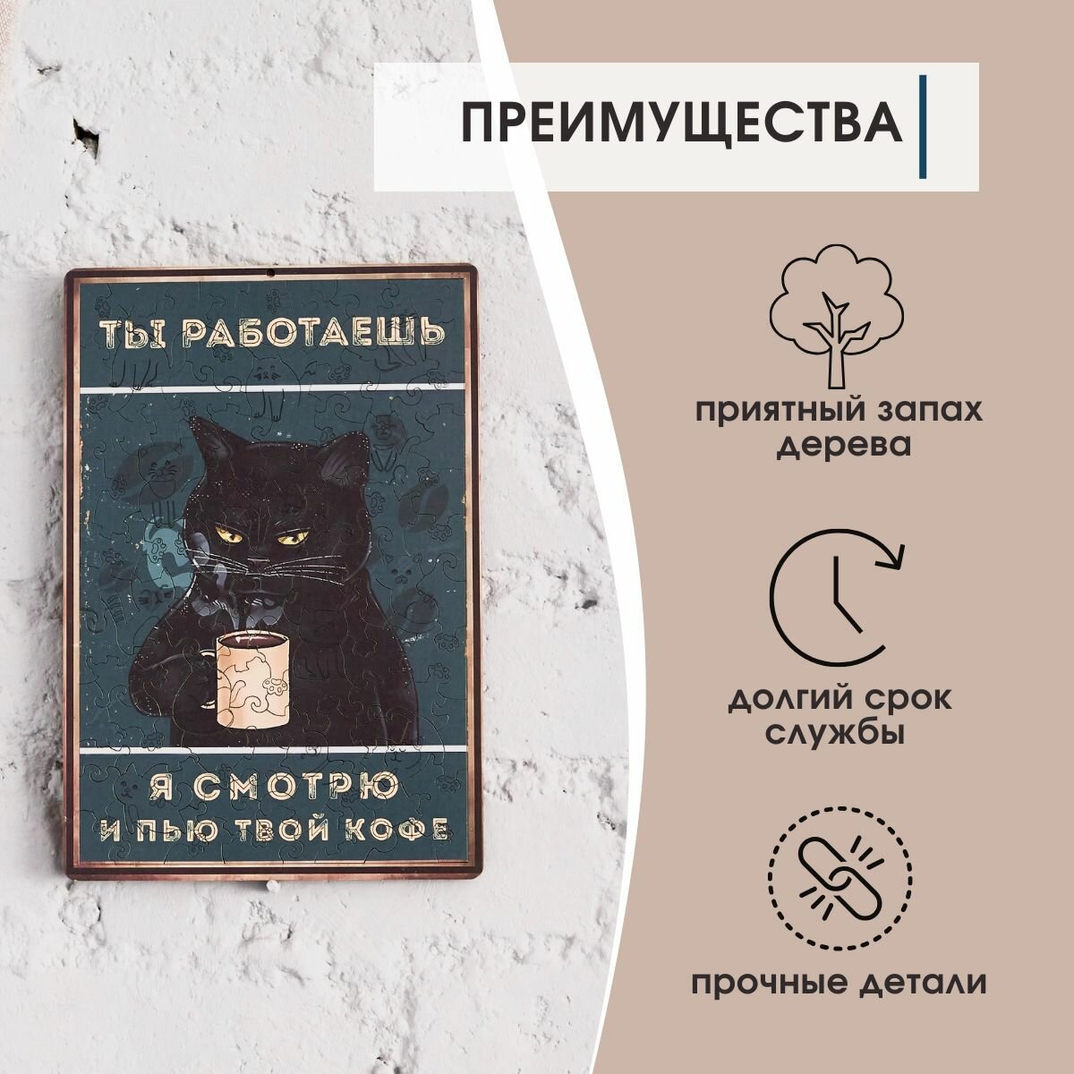 СохранитьДеревянные пазлы для взрослых и детей с рамкой 90 уникальных фигурных деталей кот кружка кофе Vintage Puzzle Posters интересное:
