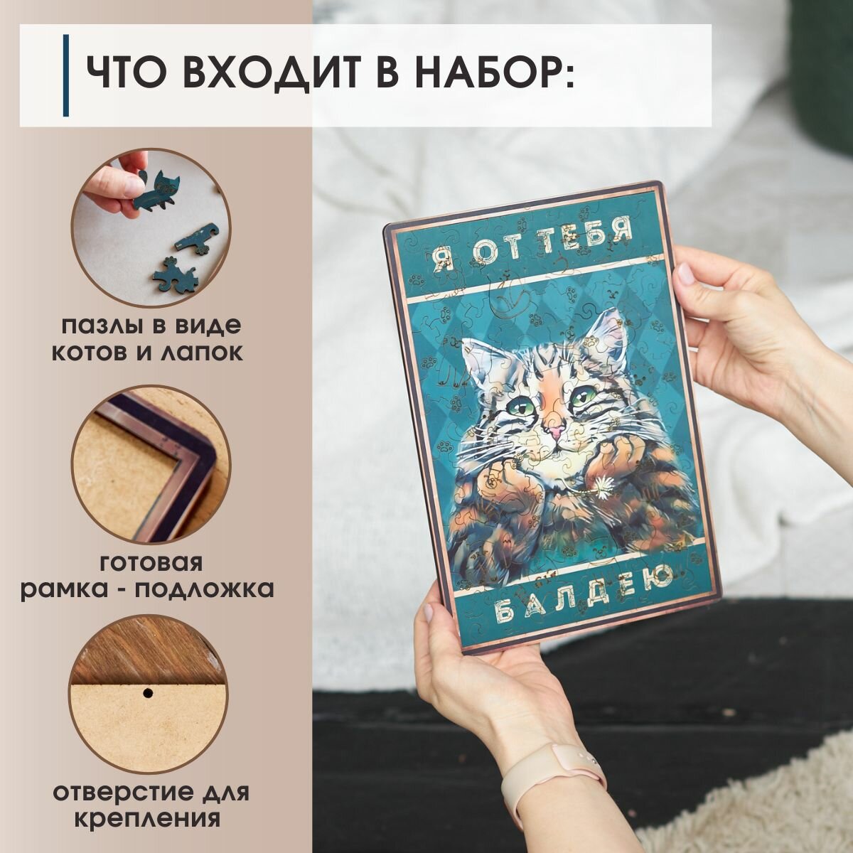 СохранитьДеревянные пазлы для взрослых и детей с рамкой 90 уникальных фигурных деталей кот с цветком Vintage Puzzle Posters интересное: