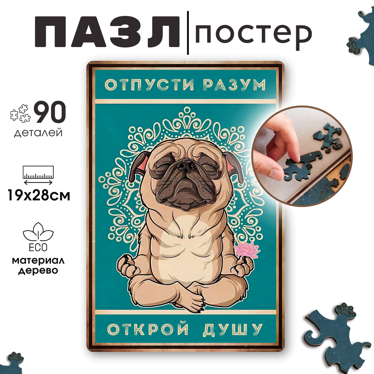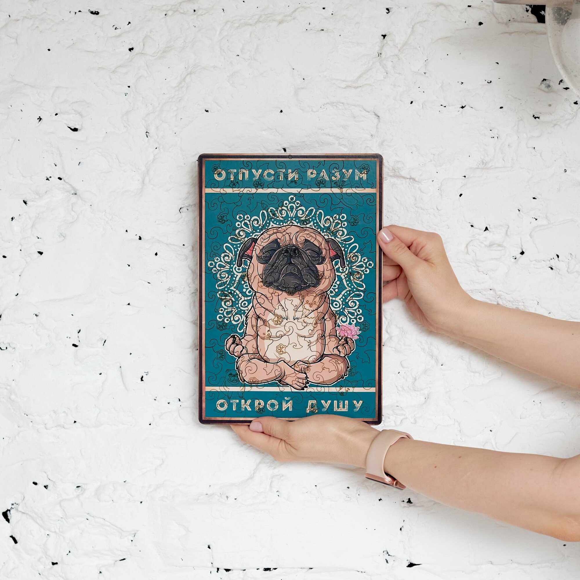 Купить Деревянные пазлы для взрослых и детей с рамкой 90 уникальных фигурных деталей мопс йога Vintage Puzzle Posters