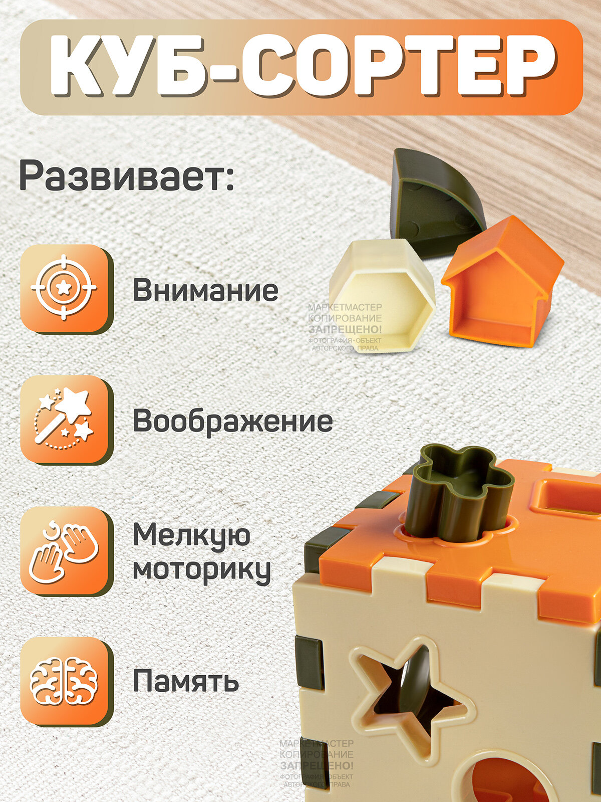 | Развивающие функции | изучение геометрических фигур / логика и мышление / моторика и ловкость |