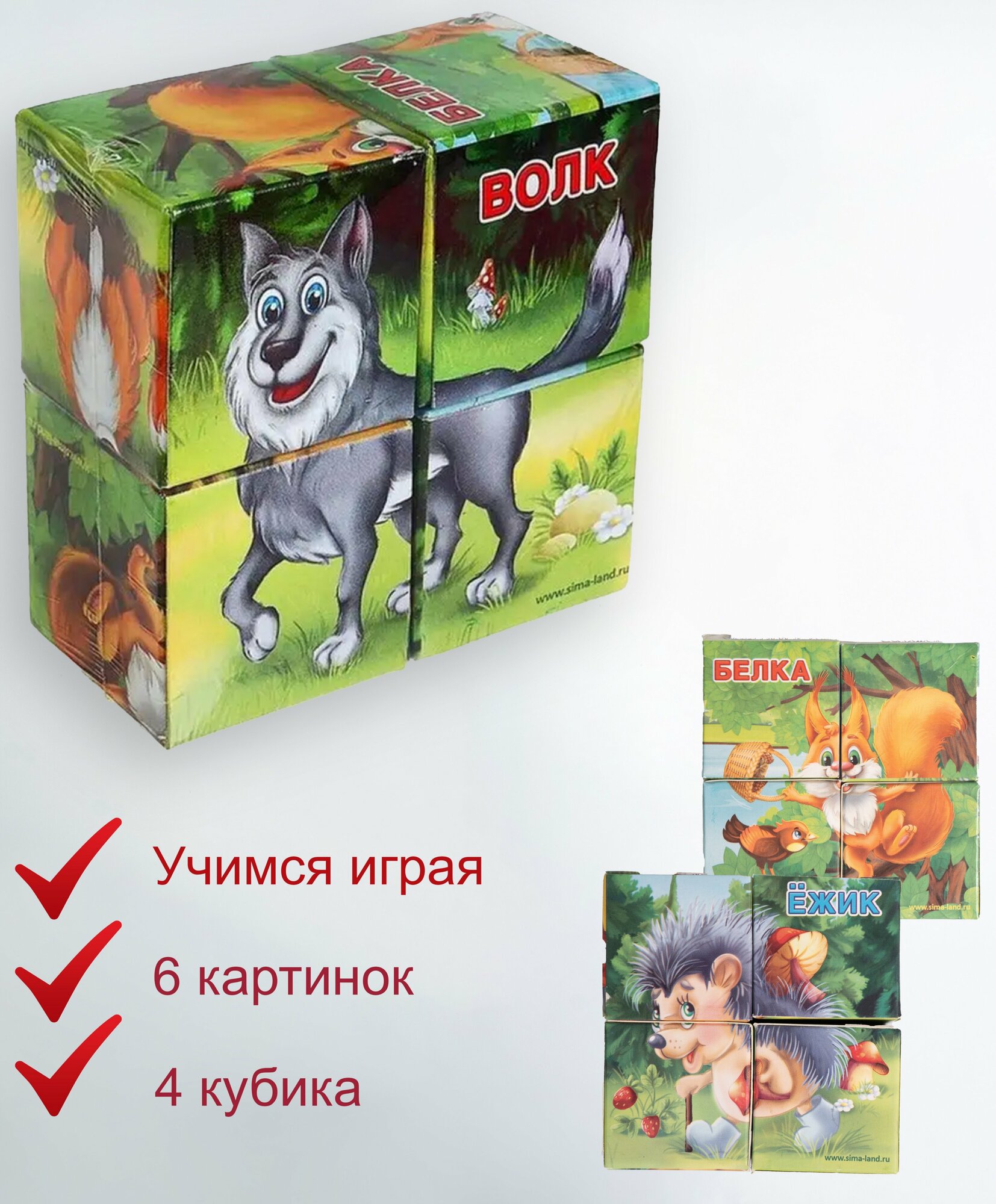 | Дополнительная информация | Кубики — традиционная развивающая игрушка для самых маленьких. С ними малыши впервые знакомятся с формой предмета, играя с кубиками как с конструктором. Также дети смогут составлять красочные картинки из элементов набора и развивать мелкую моторику и воображение! |