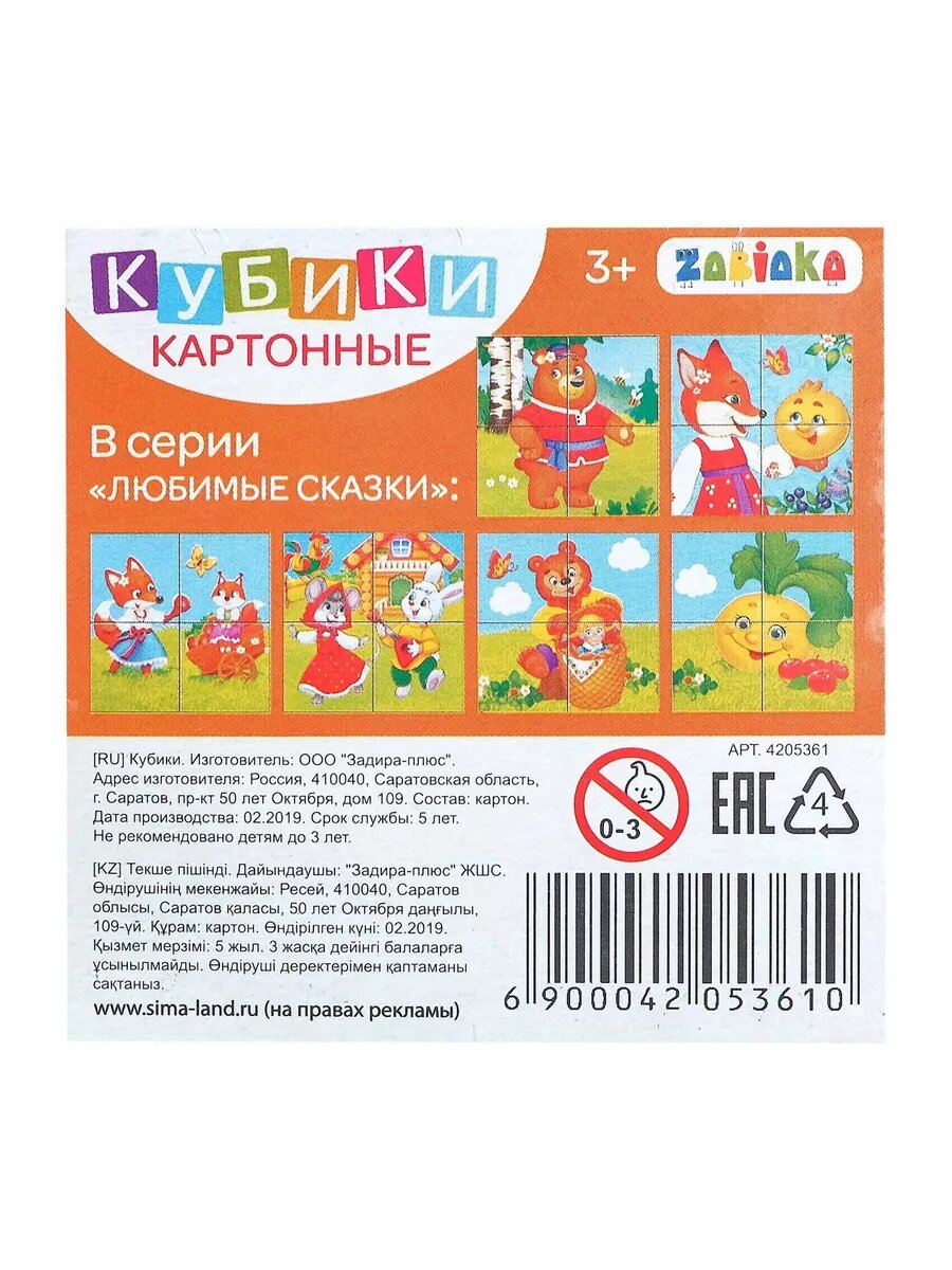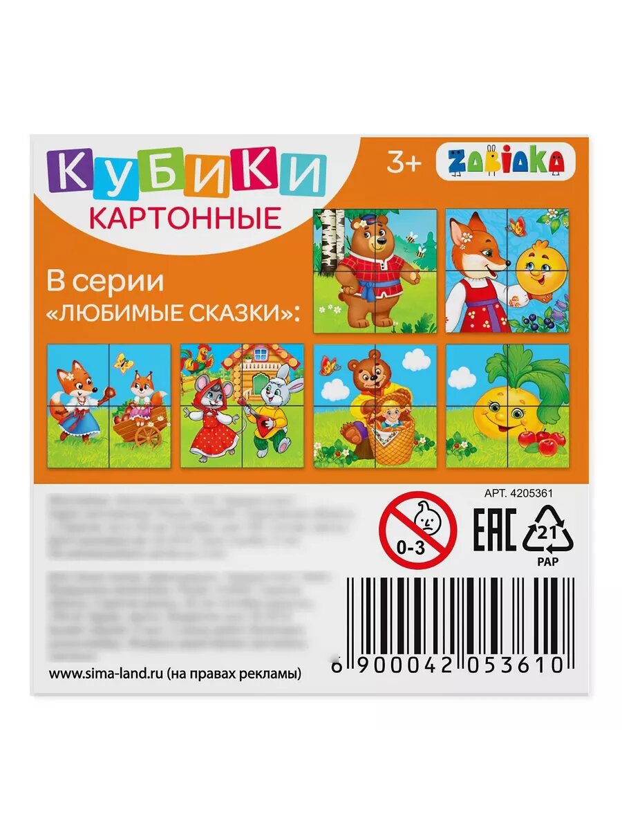 Кубики картонные Любимые сказки, 4 шт интересное: