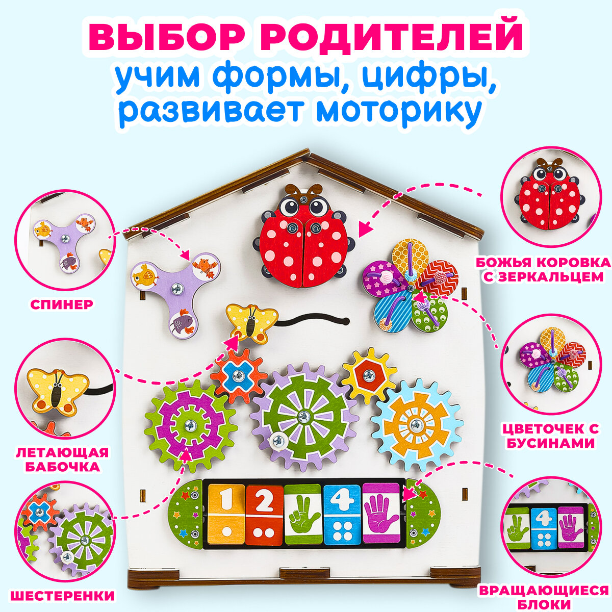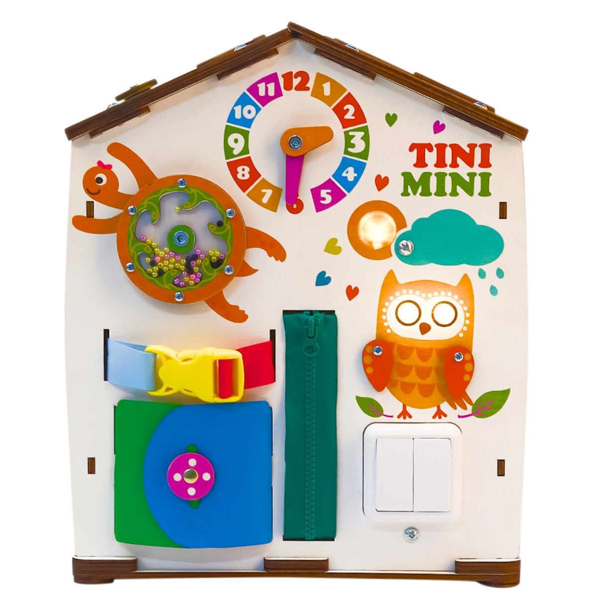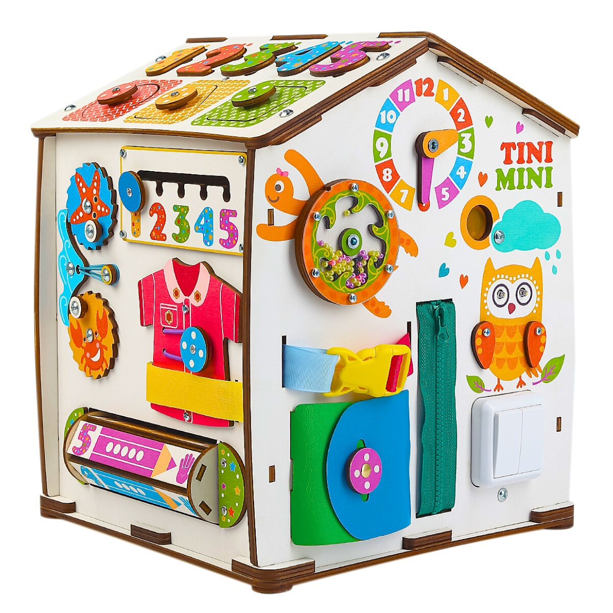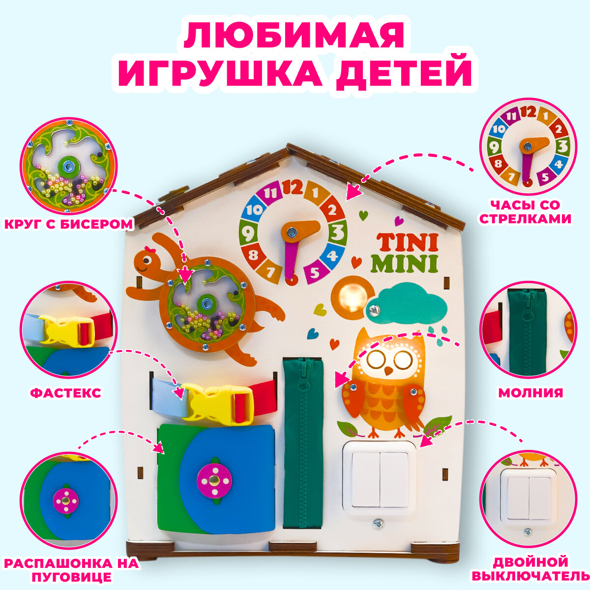 Купить Бизиборд Домик Развивающий со светом "совушка", игрушка для мальчика и девочки. Бизидом 31*31*35 см свет. TM-1