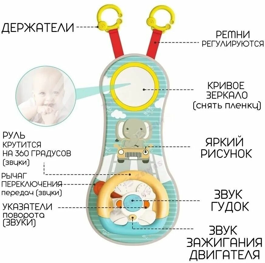 Детский руль в машину, Музыкальный руль, Игрушка в автокресло, Развивающая игрушка интересное: