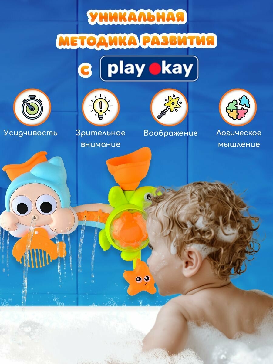 Игрушка для мальчиков и девочек Play Okay для ванной и купания, веселый фонтан, развивающая игрушка на присосках, морские обитатели интересное: