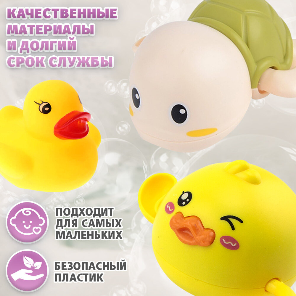 Игрушки для ванной 3 шт, заводной утенок, заводная черепашка и уточка интересное: