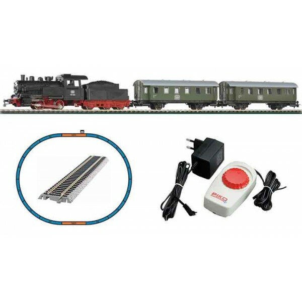 57112 PIKO стартовый набор "Пассажирский поезд с паровозом", рельсы на подложке