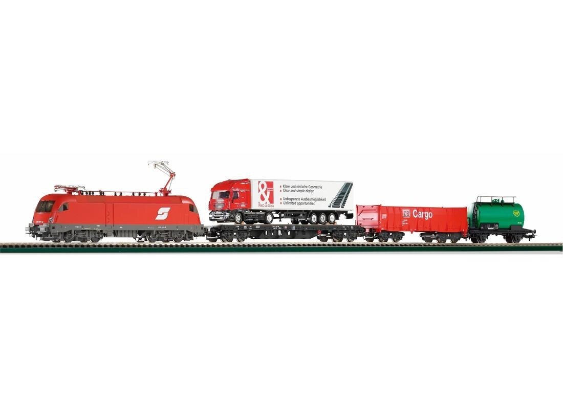 57177 PIKO Cтартовый набор "Грузовой состав с электровозом Taurus и тремя вагонами" ООВ, рельсы на подложке