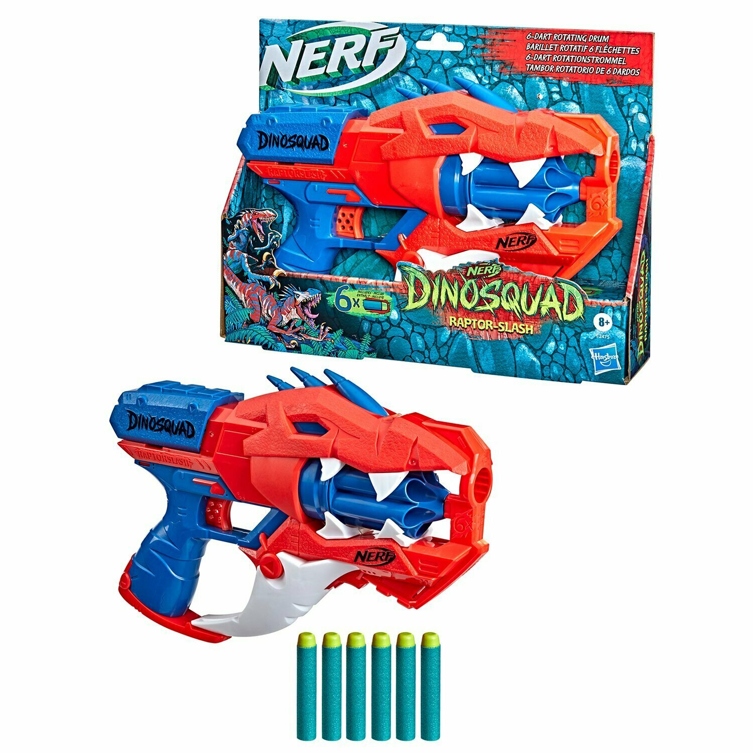 Купить Детский пистолет бластер Hasbro Nerf Дино Сквад Раптор Слэш, мягкие стрелы в комплекте (6 шт), F2475EU4, оригинал