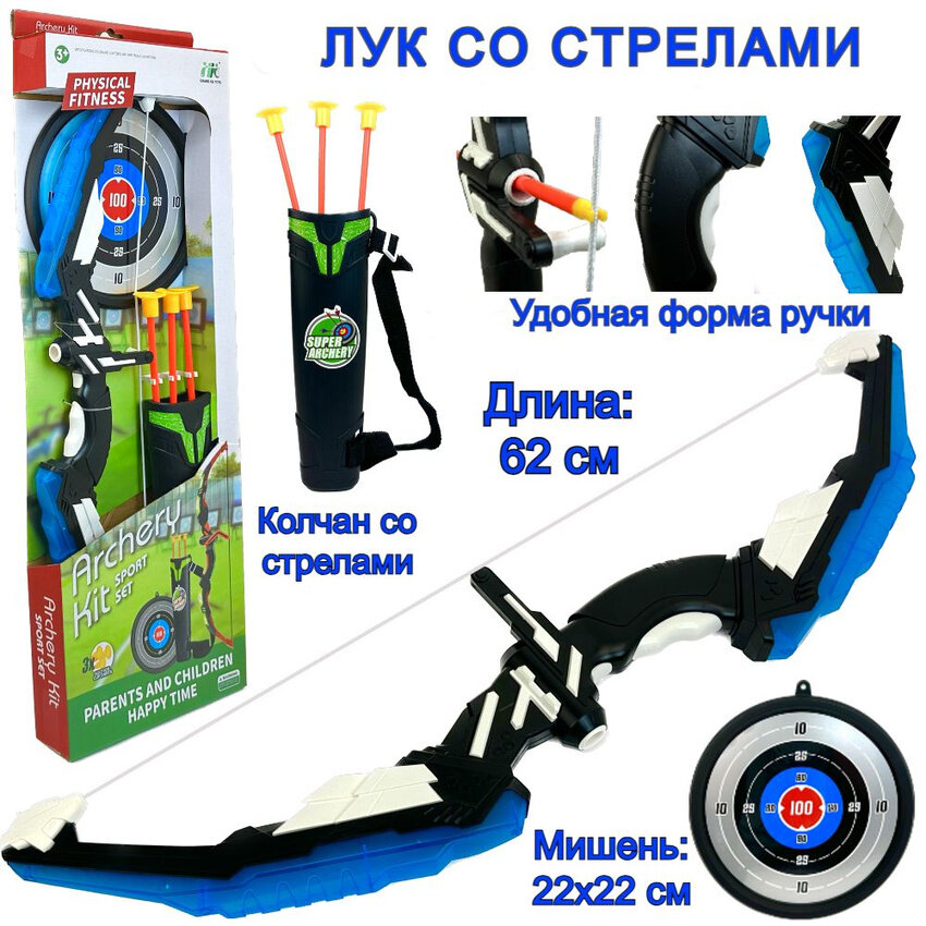 Лук со стрелами на присосках и мишенью в колчане детский игровой набор, светящийся лук 64 см, 102х61х32 см