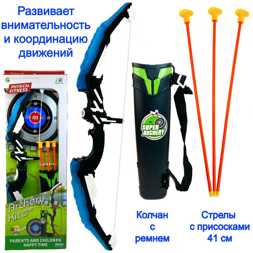 Купить Игровой набор Лук со стрелами в колчане Archery Kit, стрелы с присосками, мишень, колчан с ремнем, 62 см