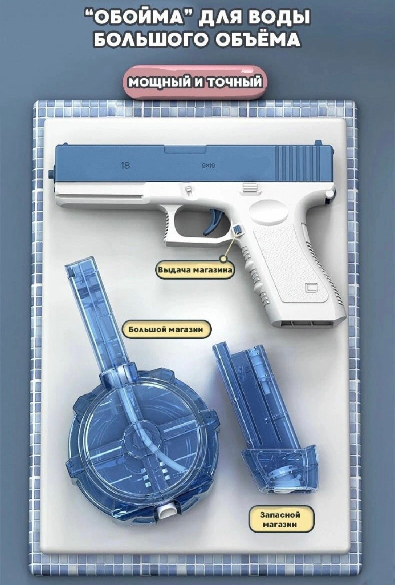 Электрический водяной пистолет GLOCK, синий