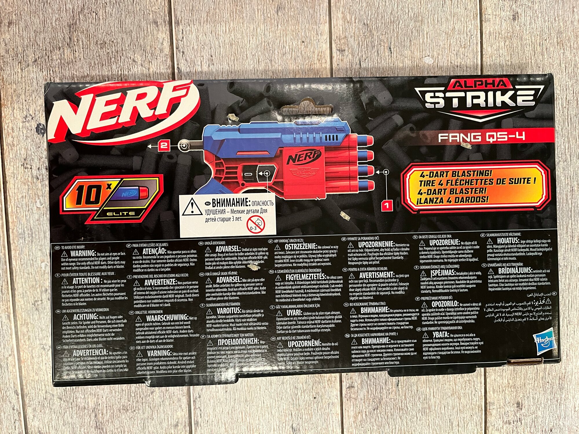 | Дополнительная информация | четыре дула; выстреливает 4 стрелы, одну за одной; в комплект входят стрелы Нёрф Элит, изготовлены из пеноматериала с гибкими, полыми наконечниками |