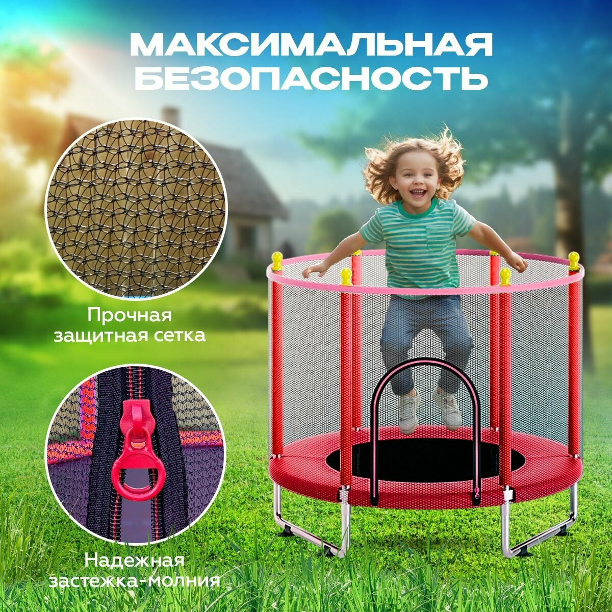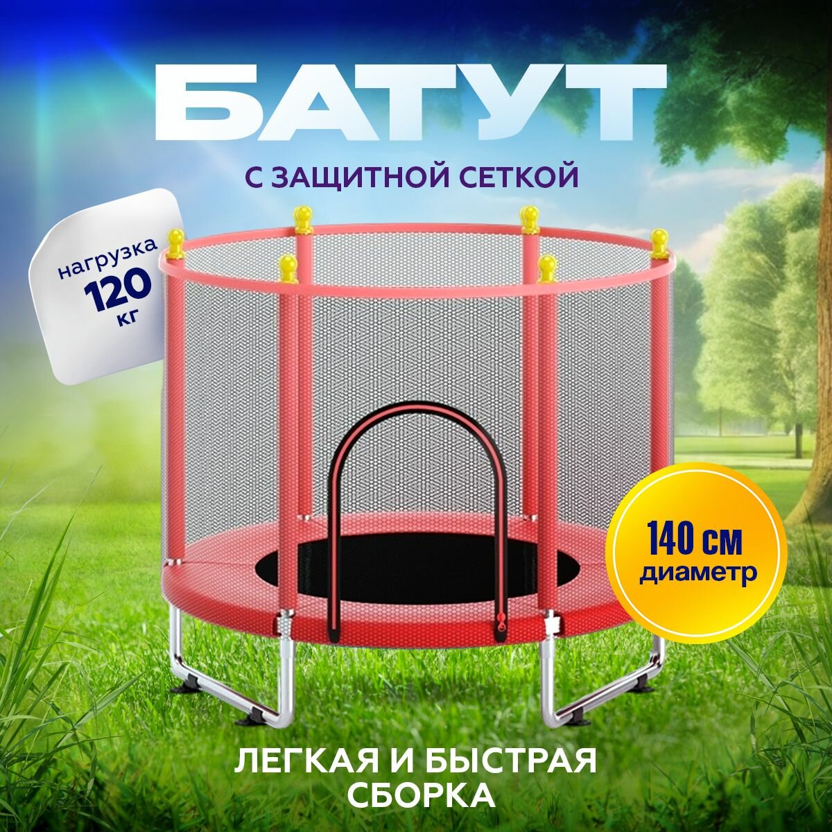 Батут с защитной сеткой детский и для взрослых каркасный уличный для джампинга и дома дачи спортивный манеж для малышей мини 140 см (U-14K) интересное: