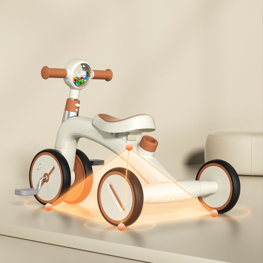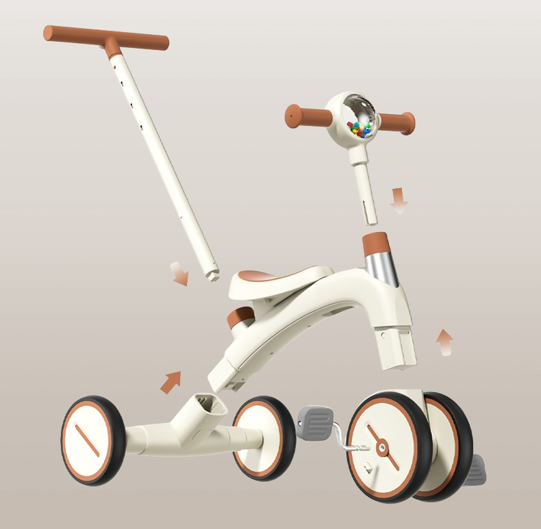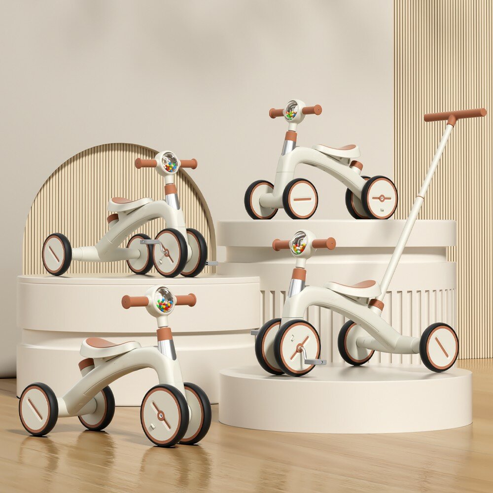 Беговел детский велосипед трехколесный каталка толокар с ручкой 4 в 1 HOP Mini бежевый/коричневый