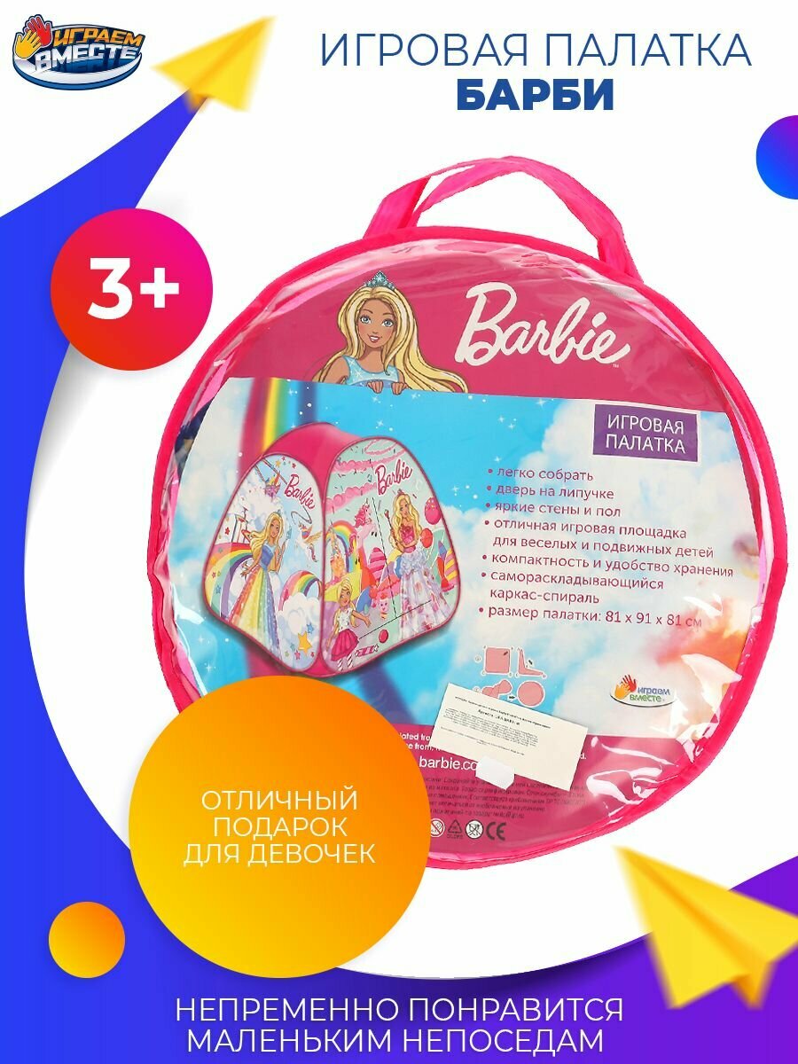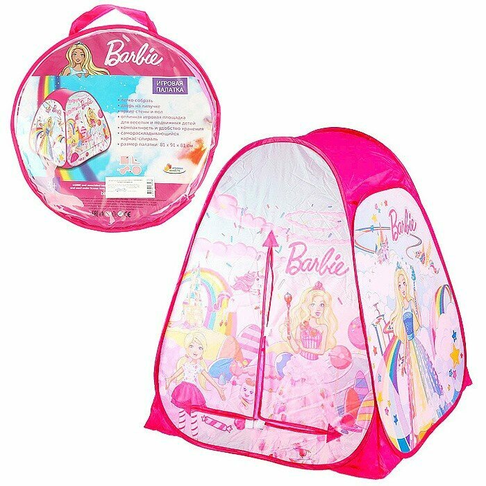 Палатка детская игровая Барби 81х90х81см в сумке интересное: