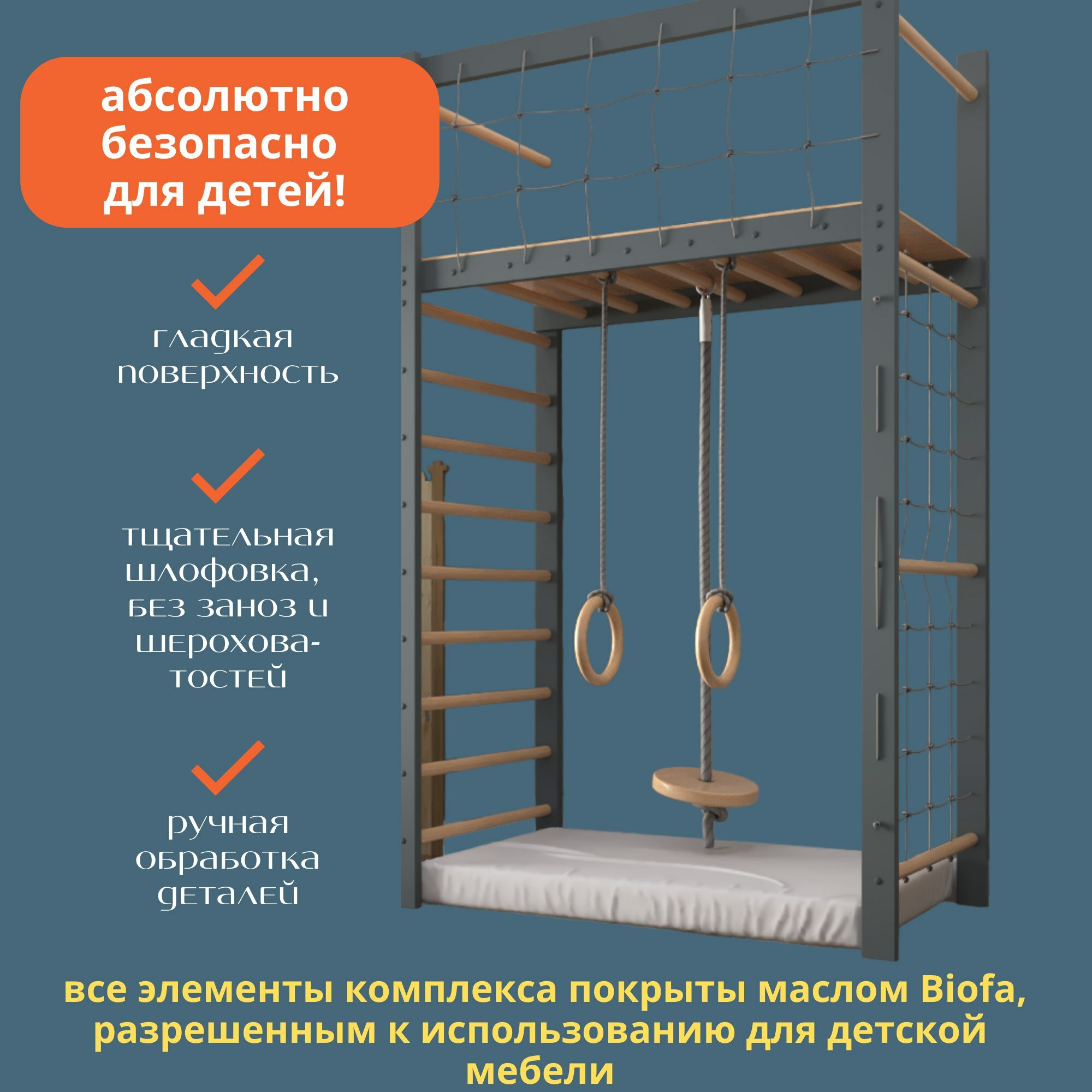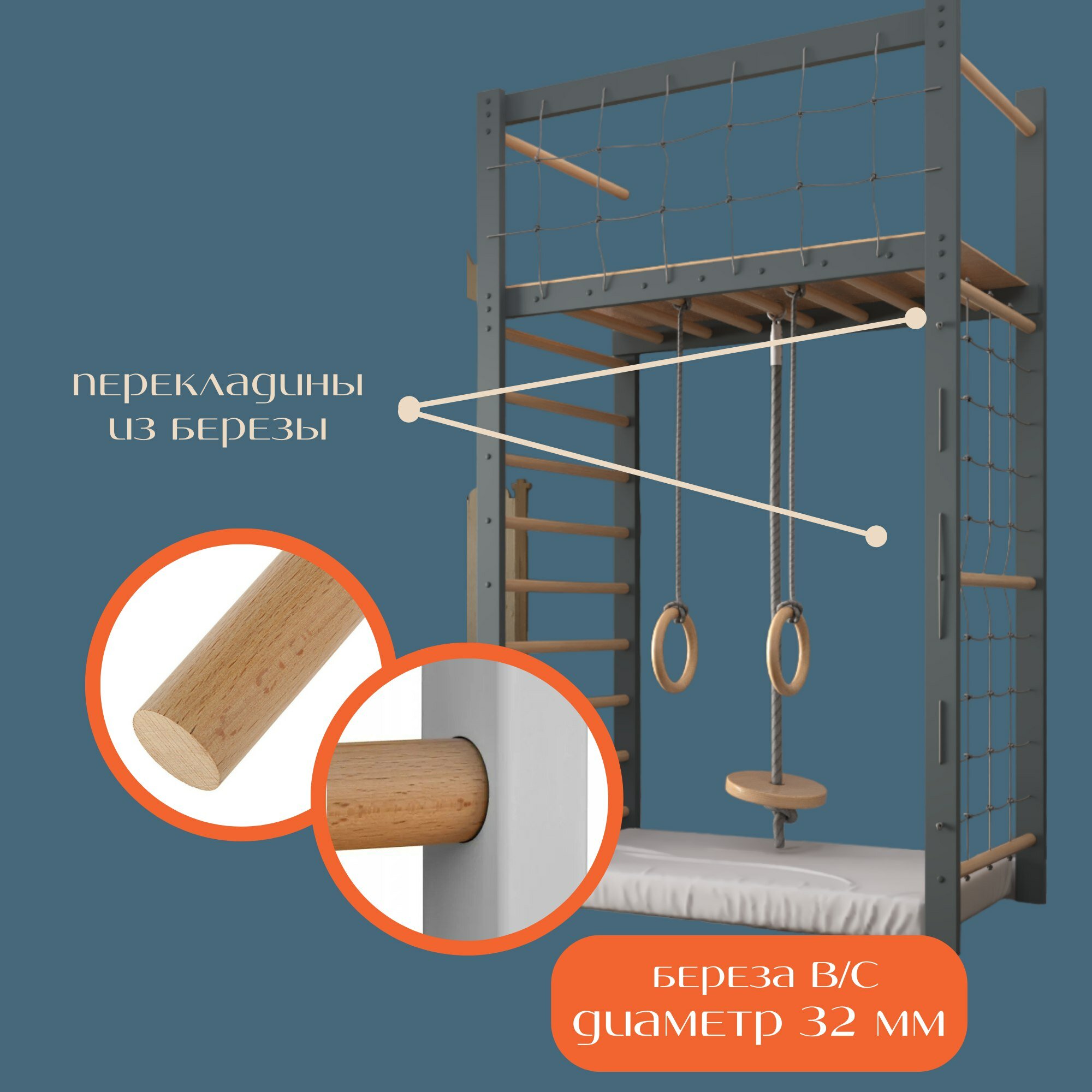 Спортивный комплекс KidPoint J1, дерево, нагрузка до 100 кг, серый. 7 в 1