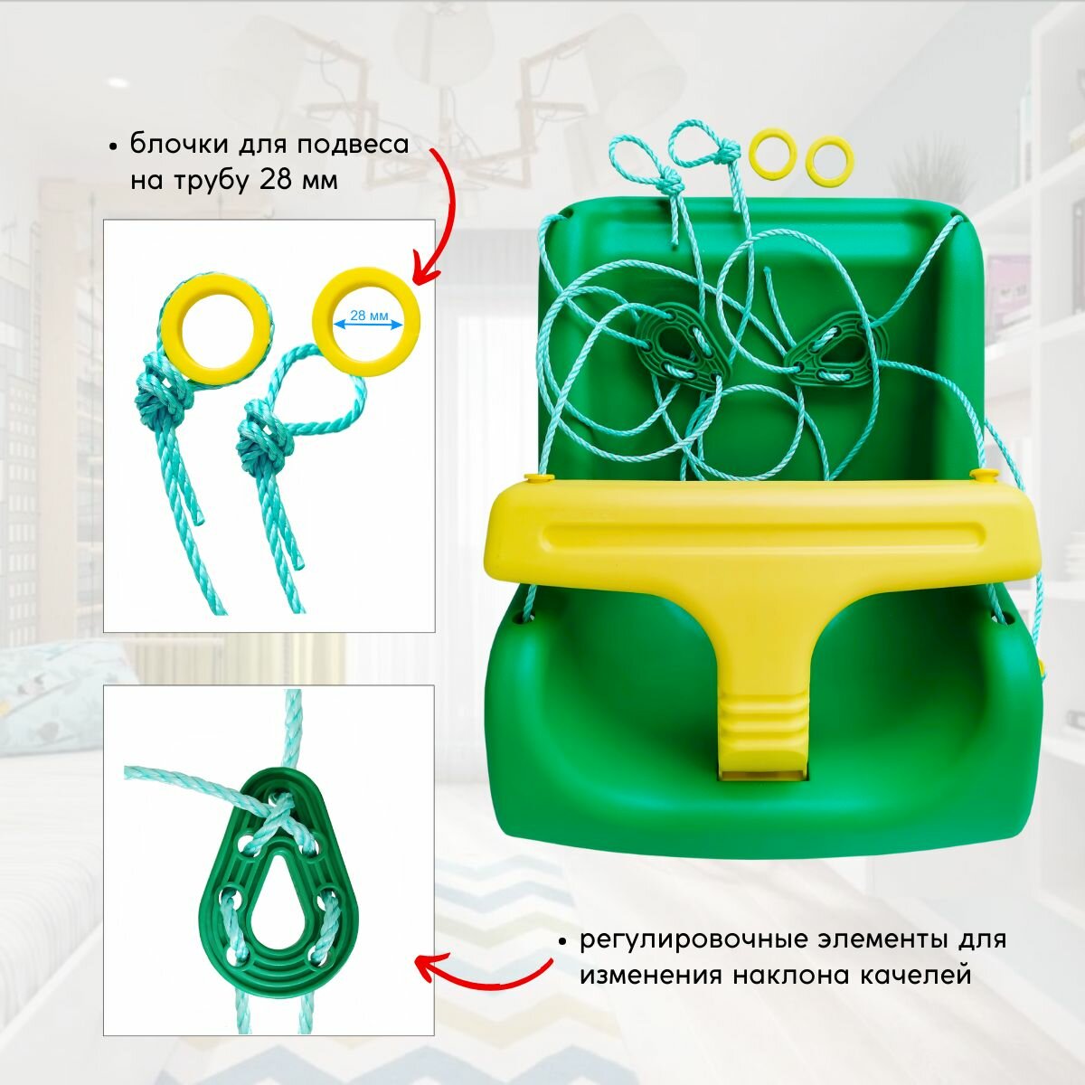 Купить Качели подвесные детские со спинкой Leco, качели-кольца, для малышей до 3 лет зеленые