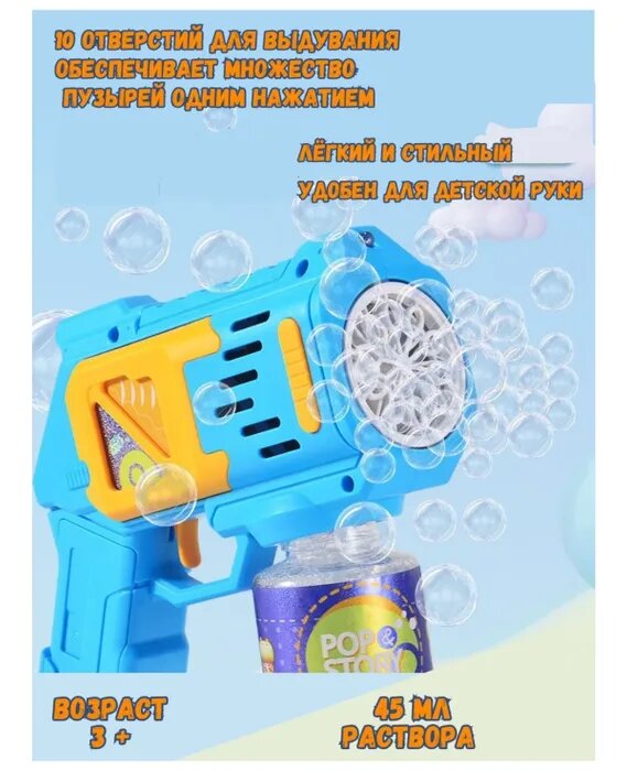 Генератор мыльных пузырей "Пистолет с мыльными пузырями" голубой интересное: