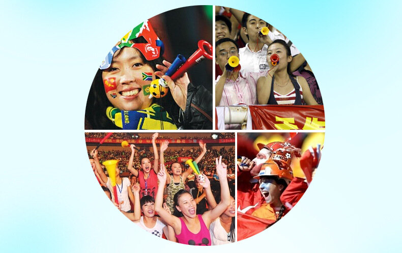 Музыкальный инструмент "Футбольный рожок", трехсекционный, для подбадривания, трехцветный интересное: