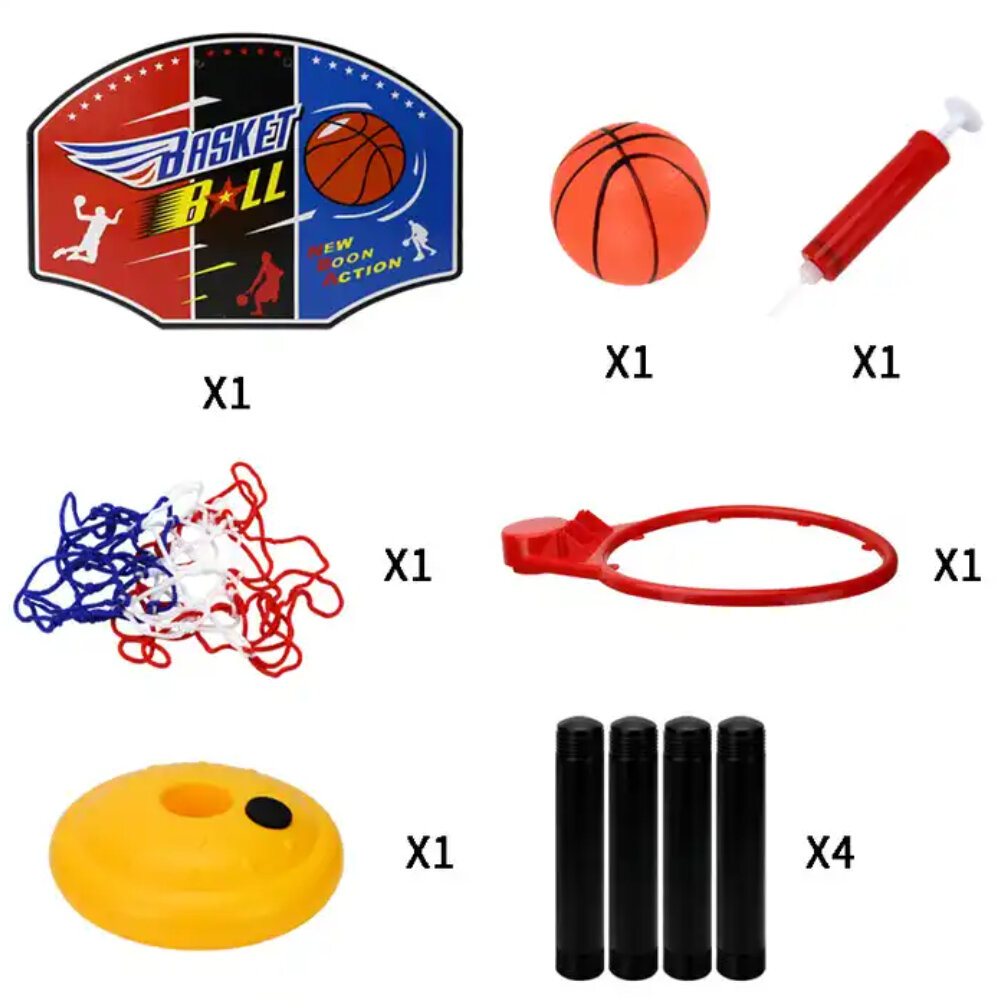 Игровой набор Детское баскетбольное кольцо для дома и улицы с мячом 15 см, баскетбольная стойка с щитом, высота регулируется, насос интересное: