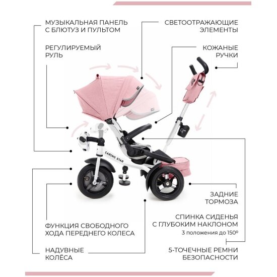 Трехколесный велосипед Сaring Star Caring star F1 Пудра интересное: