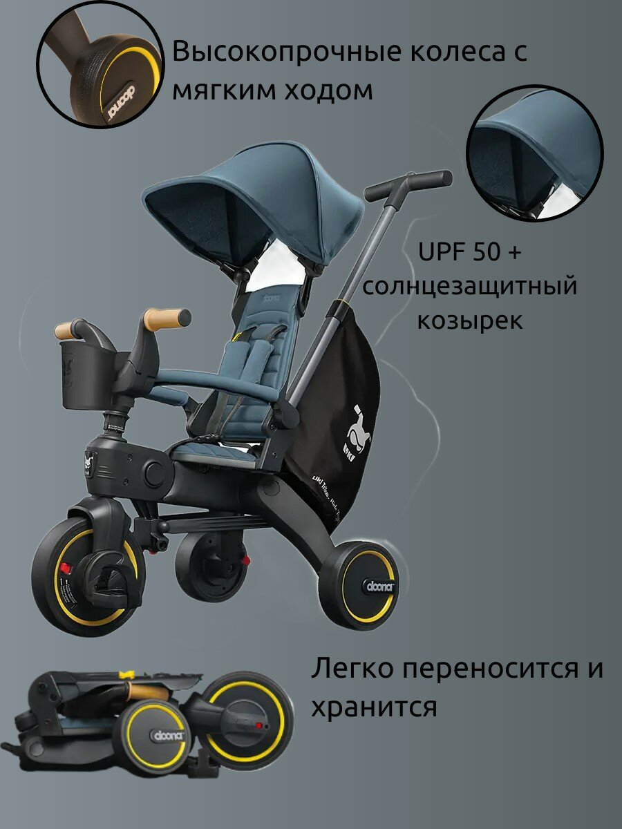 Велосипед детский трехколесный складной Doona Liki Trike S5 с родительской ручкой Ocean Blue интересное: