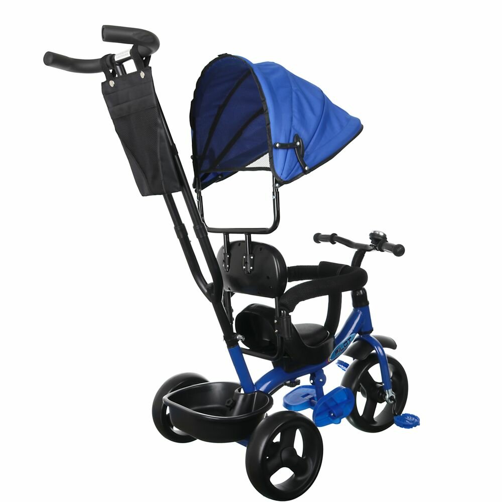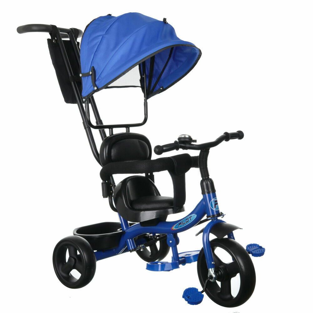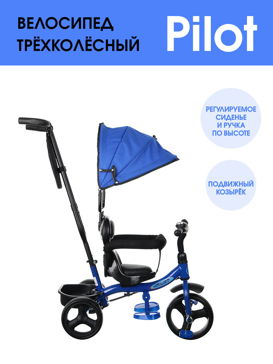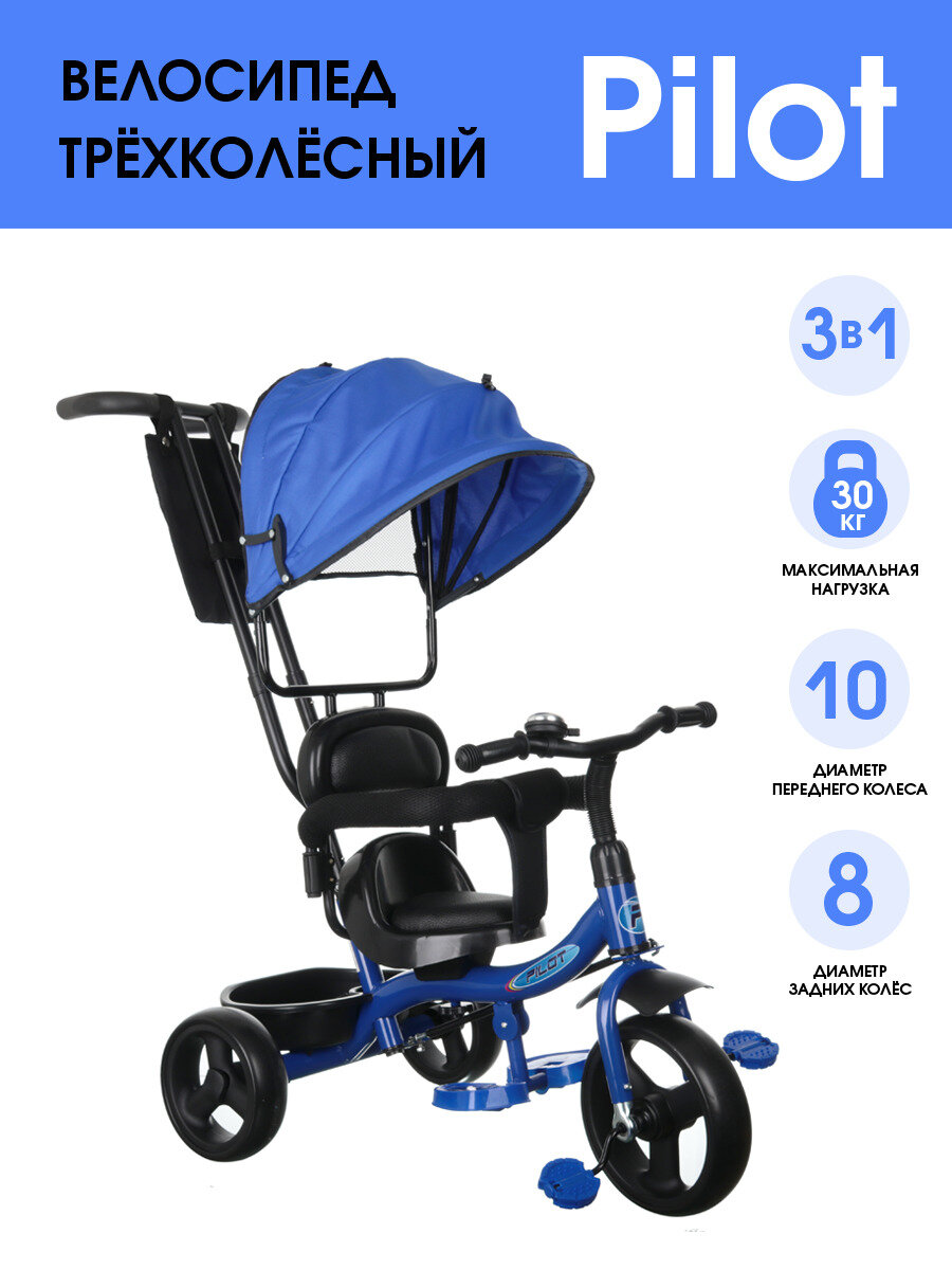 Купить Велосипед 3-х колес.с руч.управ. цв.син, пластик.колеса D10 и 8", рег.ручка, в/к 60*30*40 см, PT1B
