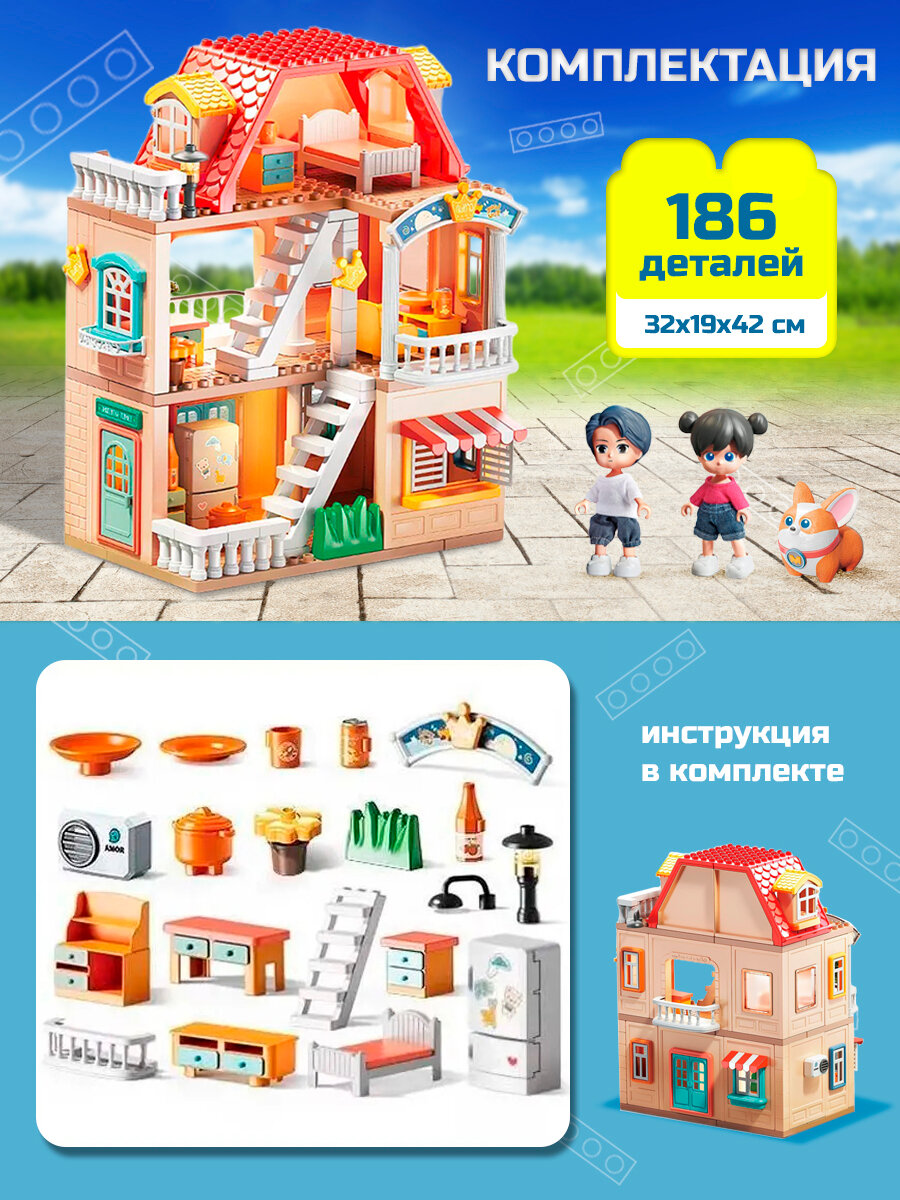 Купить Конструктор кукольный домик с фигурками и подсветкой совместим с Lego Duplo