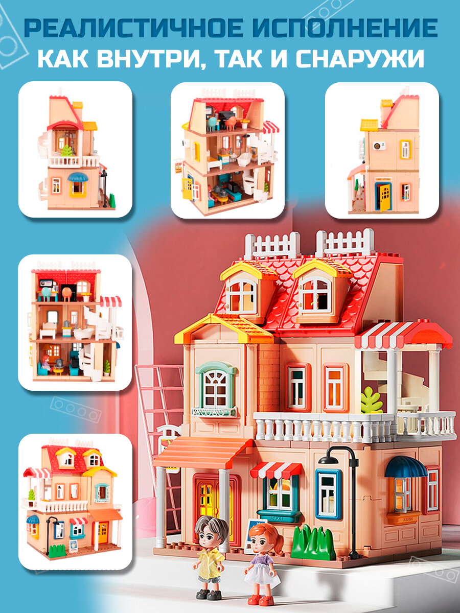 Конструктор для девочек большой домик для кукол с фигурками и подсветкой совместим с Лего дупло