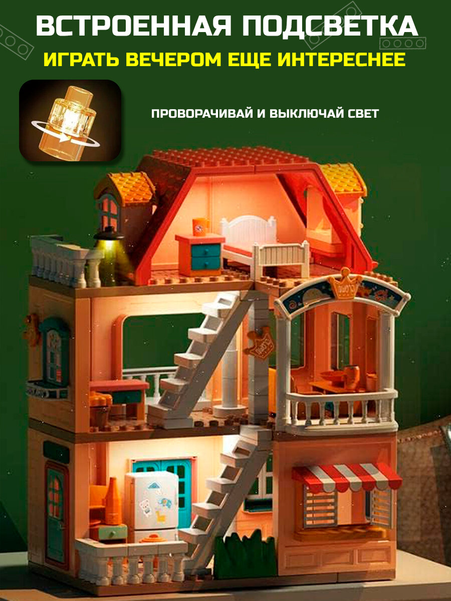 Конструктор кукольный домик с фигурками и подсветкой совместим с Lego Duplo интересное: