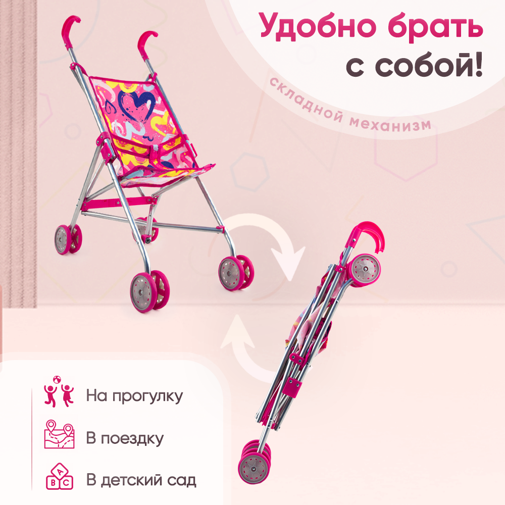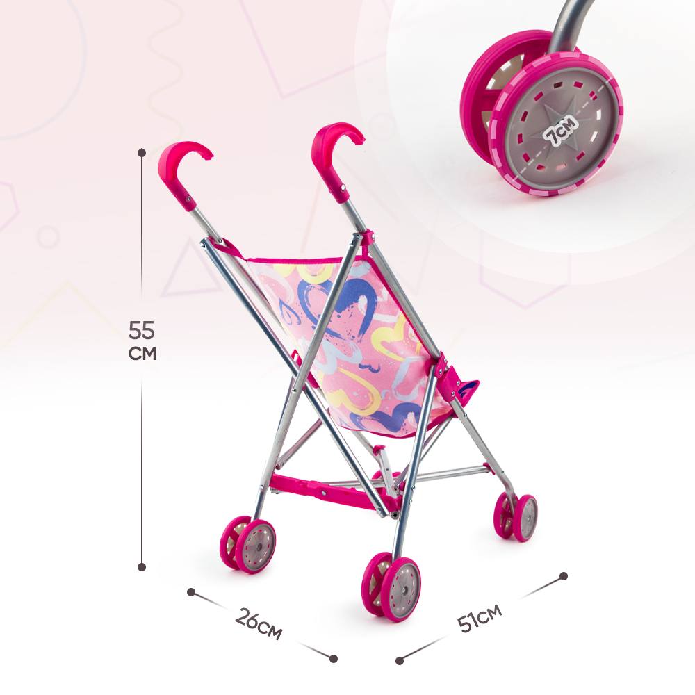 Коляска-трость для кукол розовая со звездочками в пакете