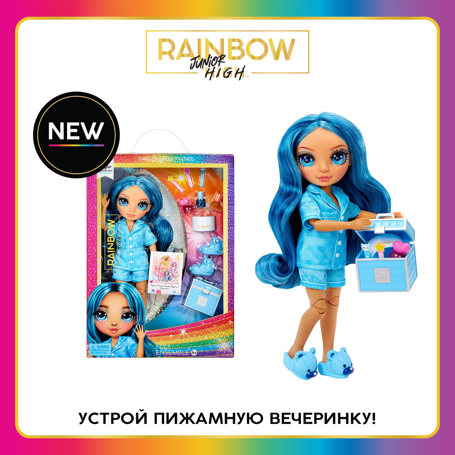 Купить Рейнбоу Хай Кукла Junior PJ Party Скайлер голубая с аксессуарами RAINBOW HIGH