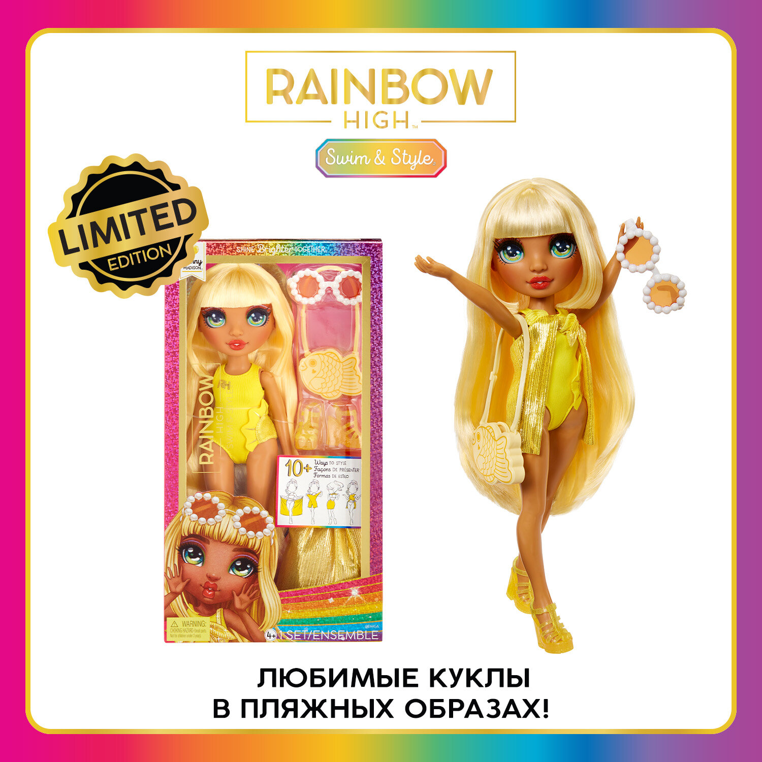 Купить Кукла Rainbow High Swim Санни Мэдисон 28 см желтая с аксессуарами .