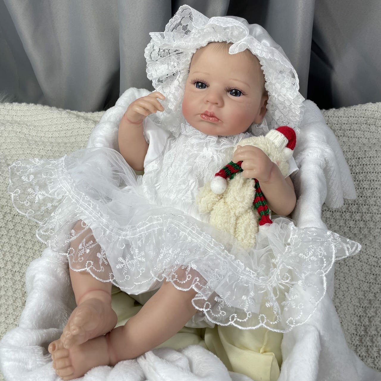 Купить Кукла реборн NPK девочка 50 см. Виниловая кукла Reborn в белом платье. Можно купать.