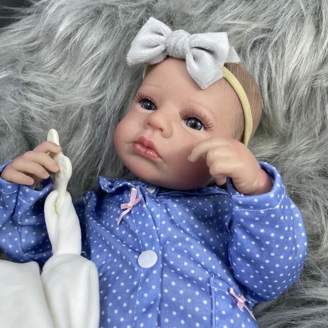 Купить Кукла реборн NPK девочка 50 см. Виниловая кукла Reborn в синем слипе. Можно купать.