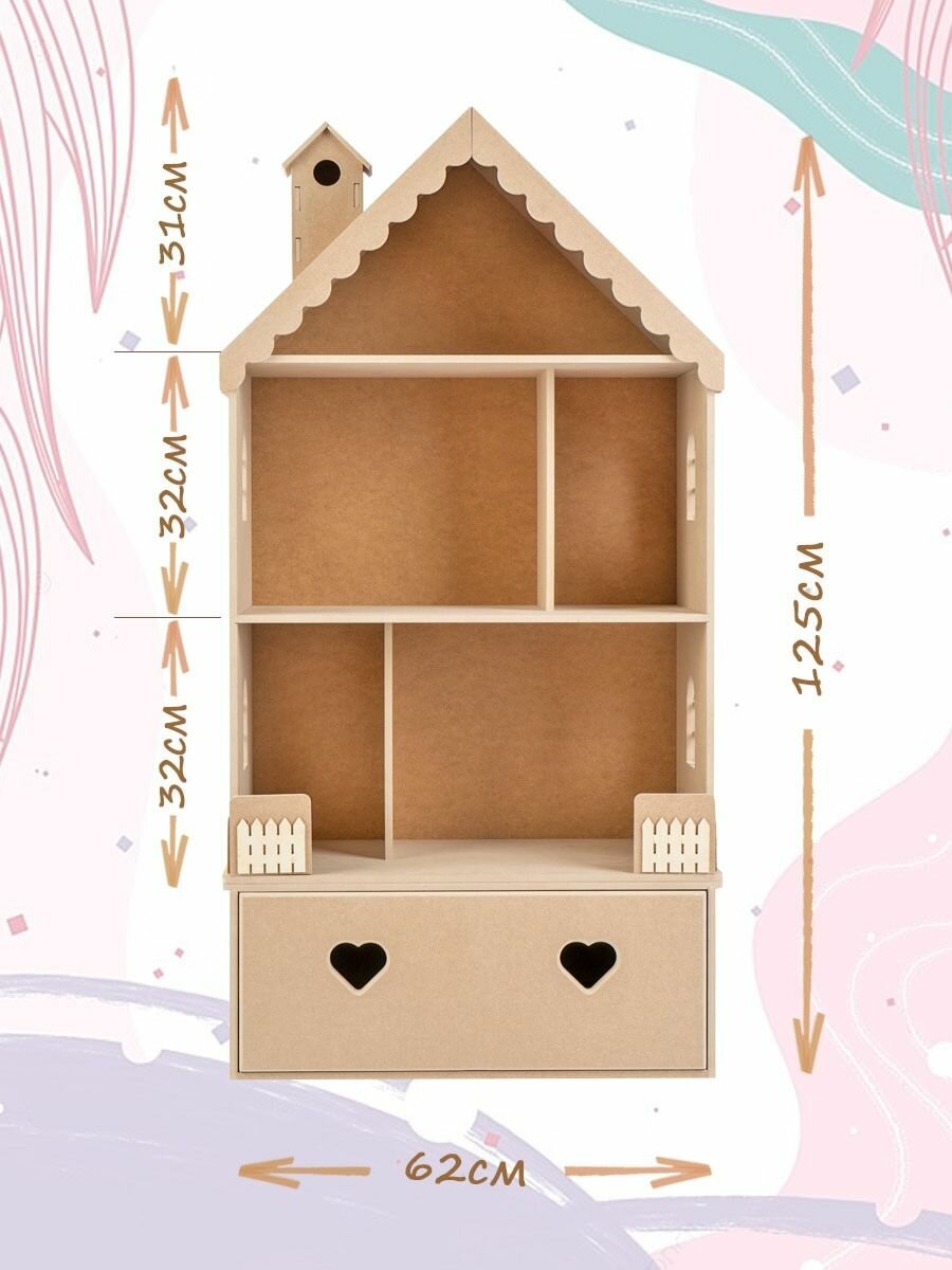 Кукольный домик деревянный с комодом Луиза для кукол до 32 см без окрашивания. интересное: